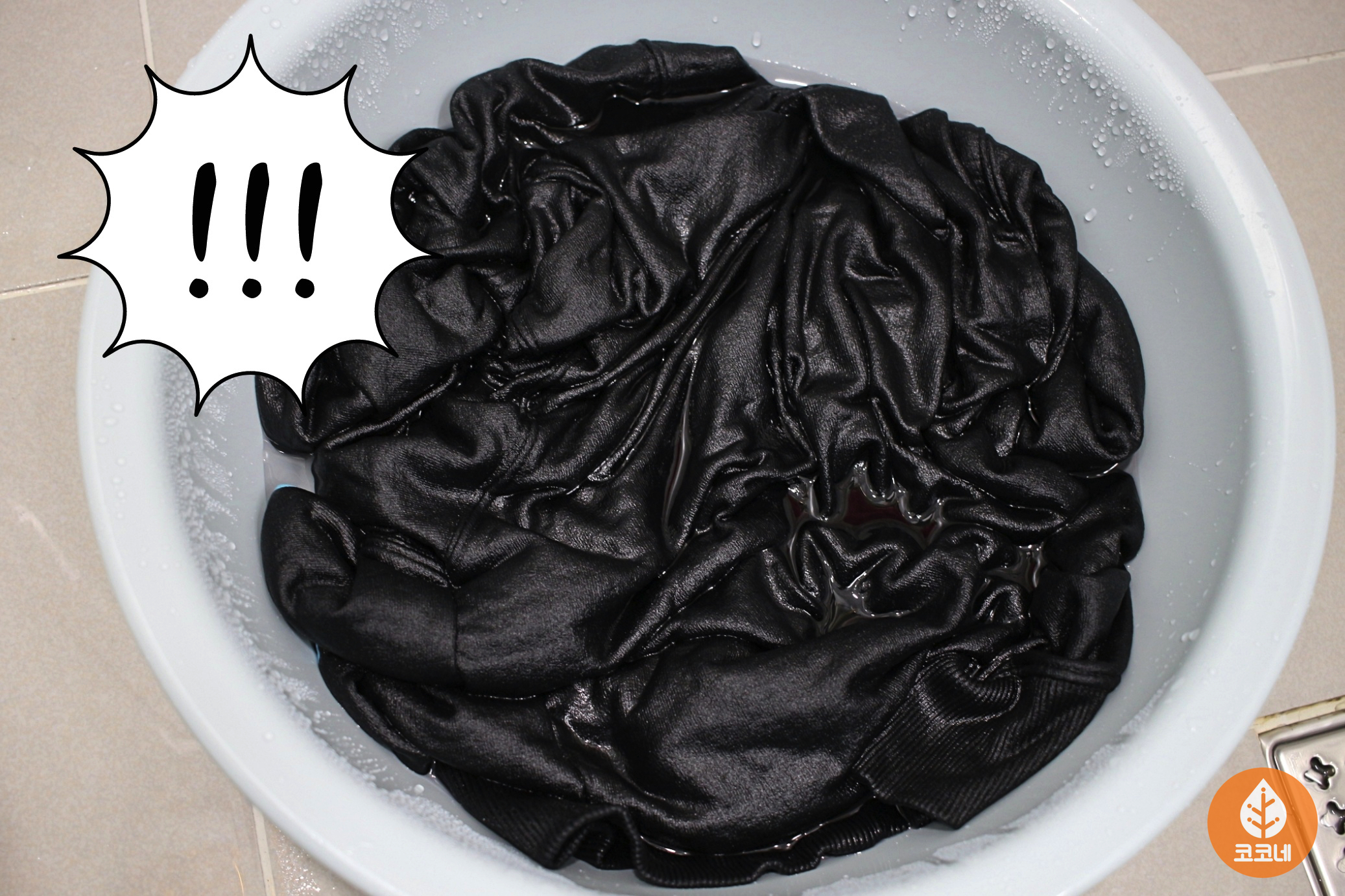 일단 물 빠진 검정색옷을 세탁해주세요.