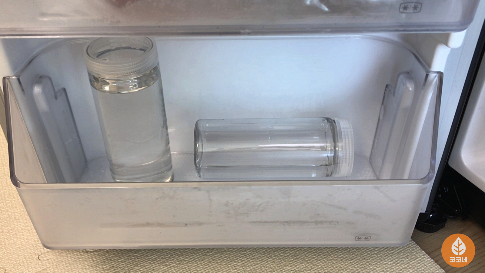시간이 지나서 냉동실에 넣어둔 물병을 꺼냈어요.