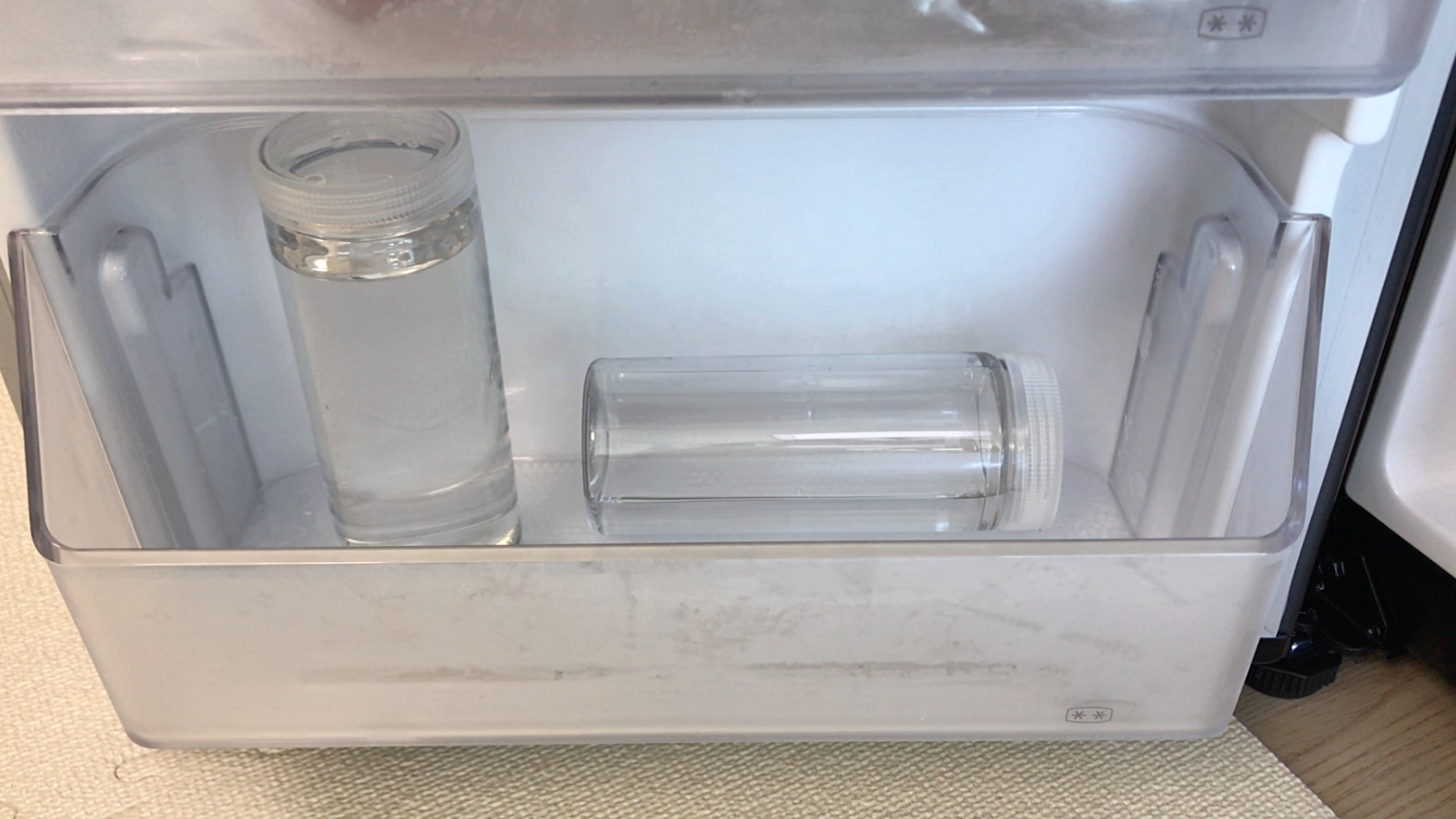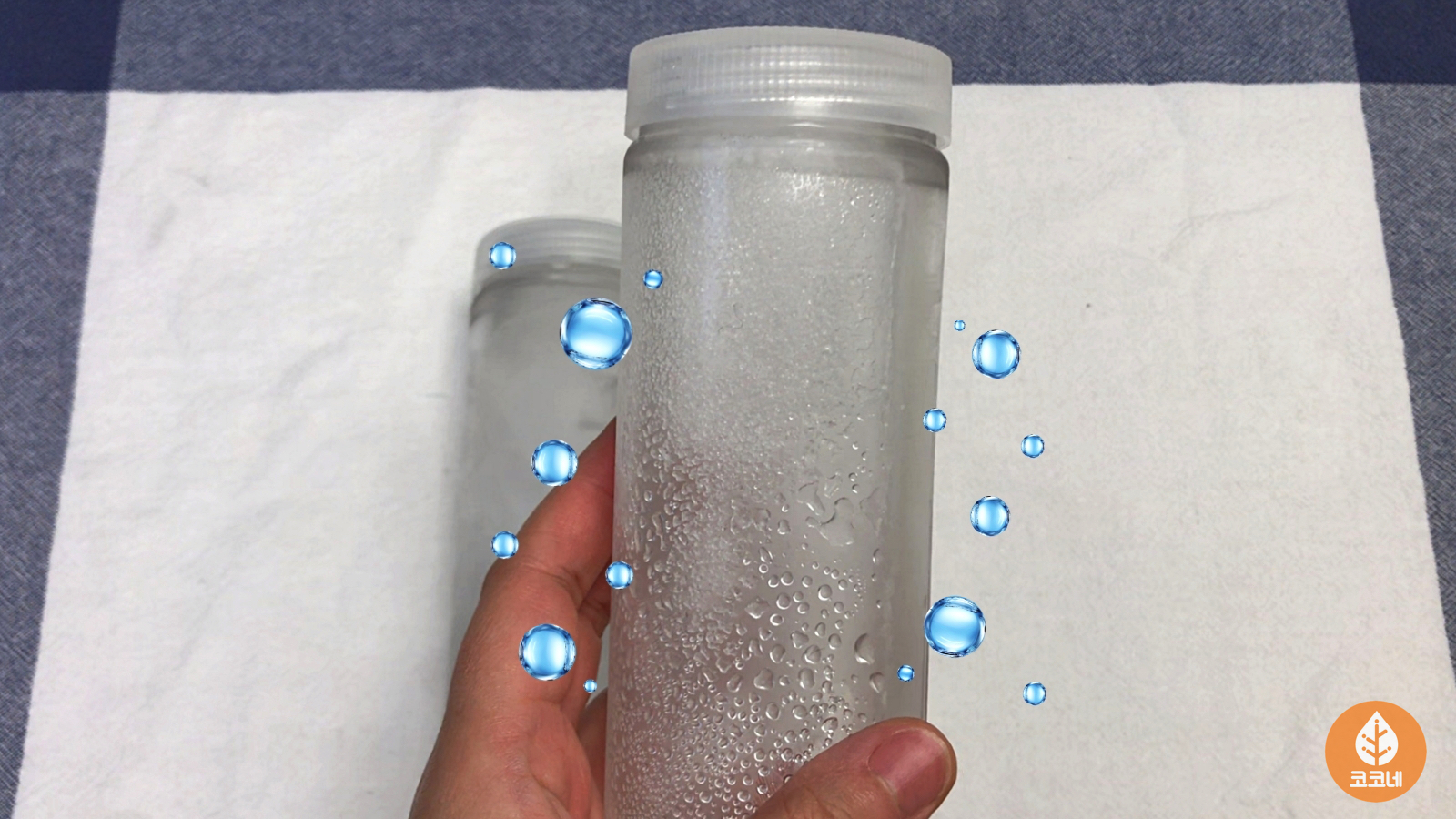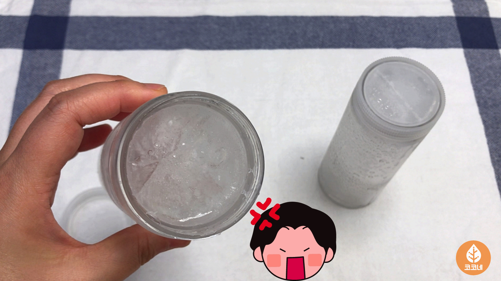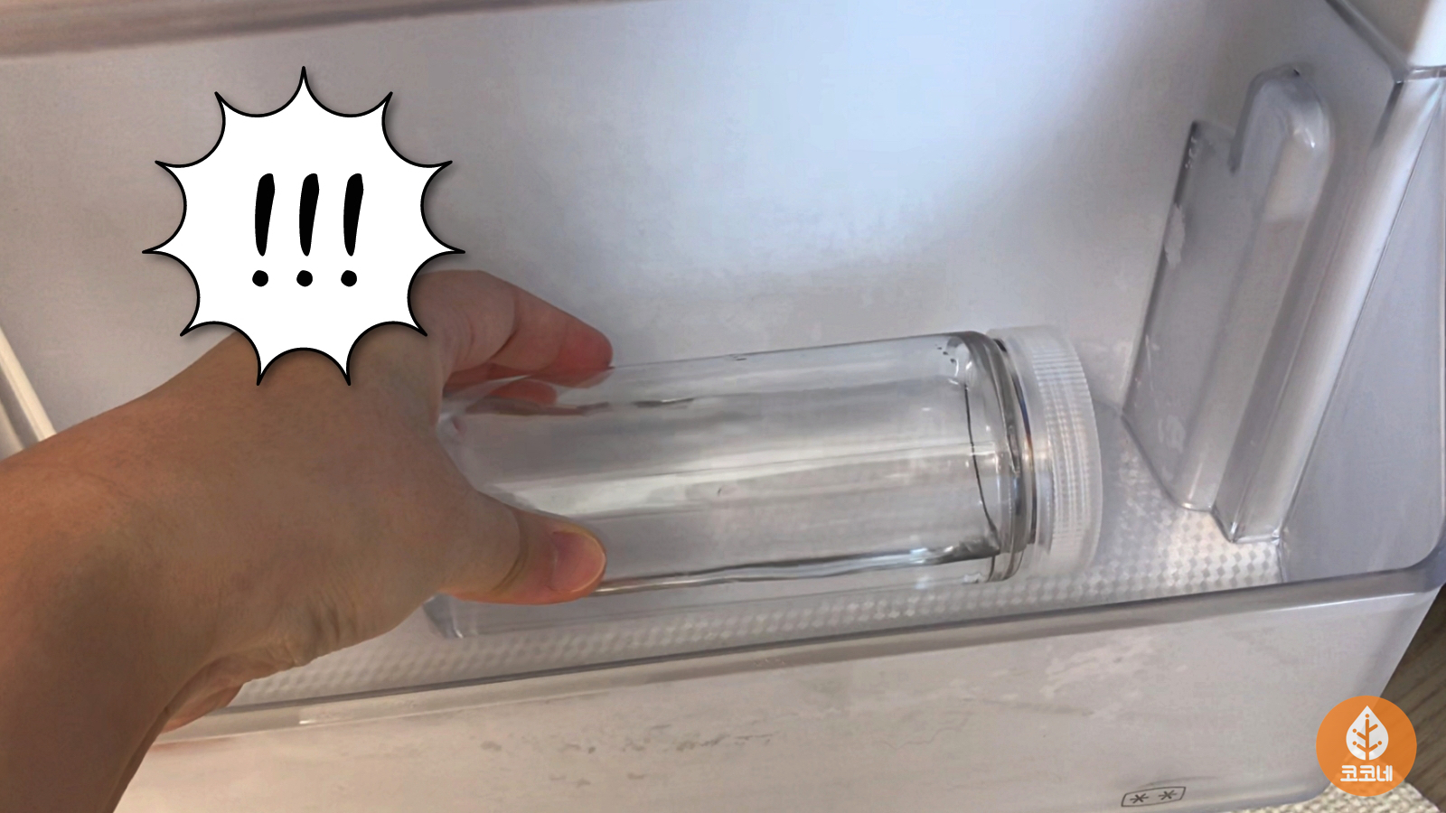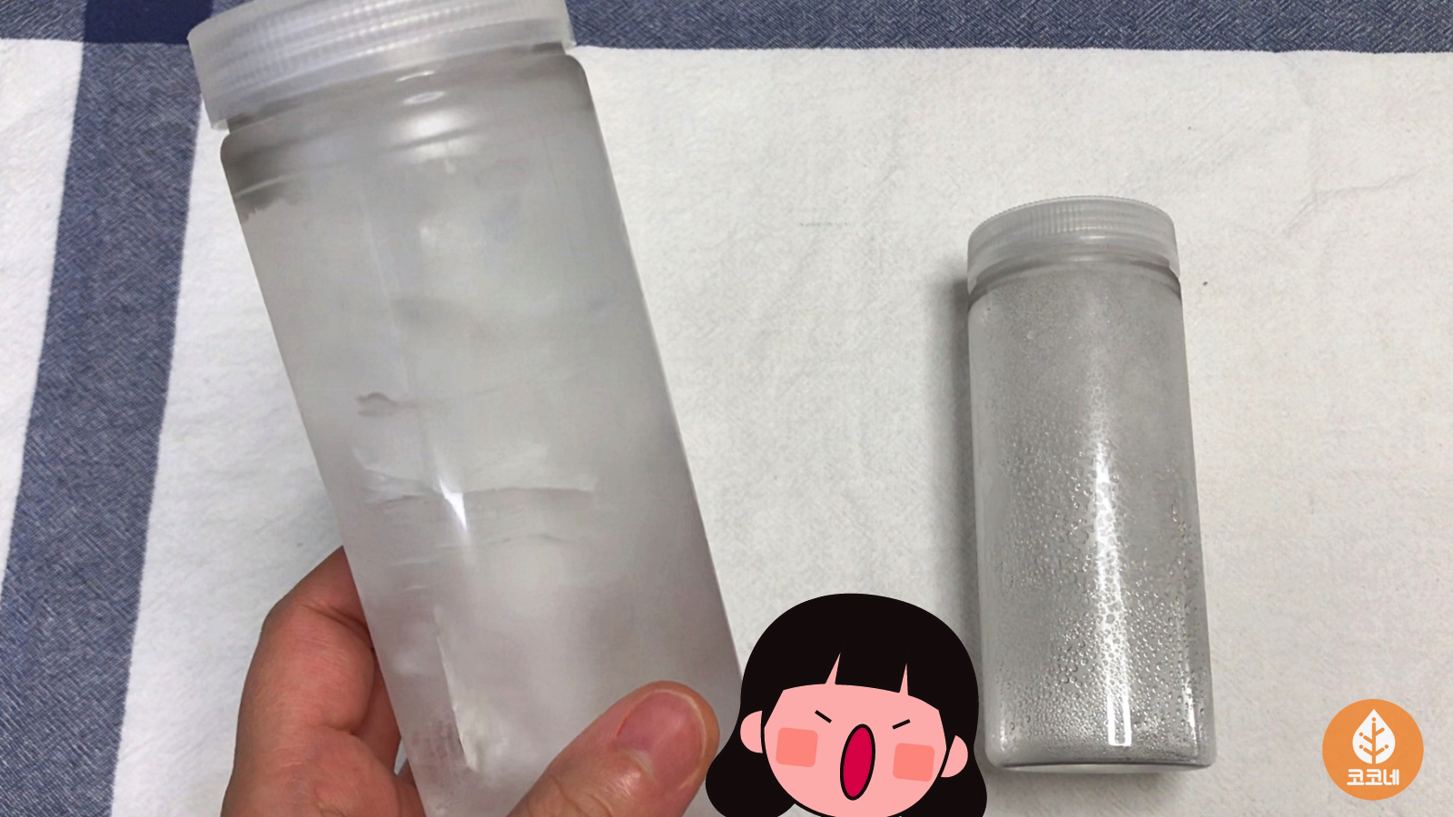 시간이 지나서 냉동실에 넣어둔 물병을 꺼냈어요.