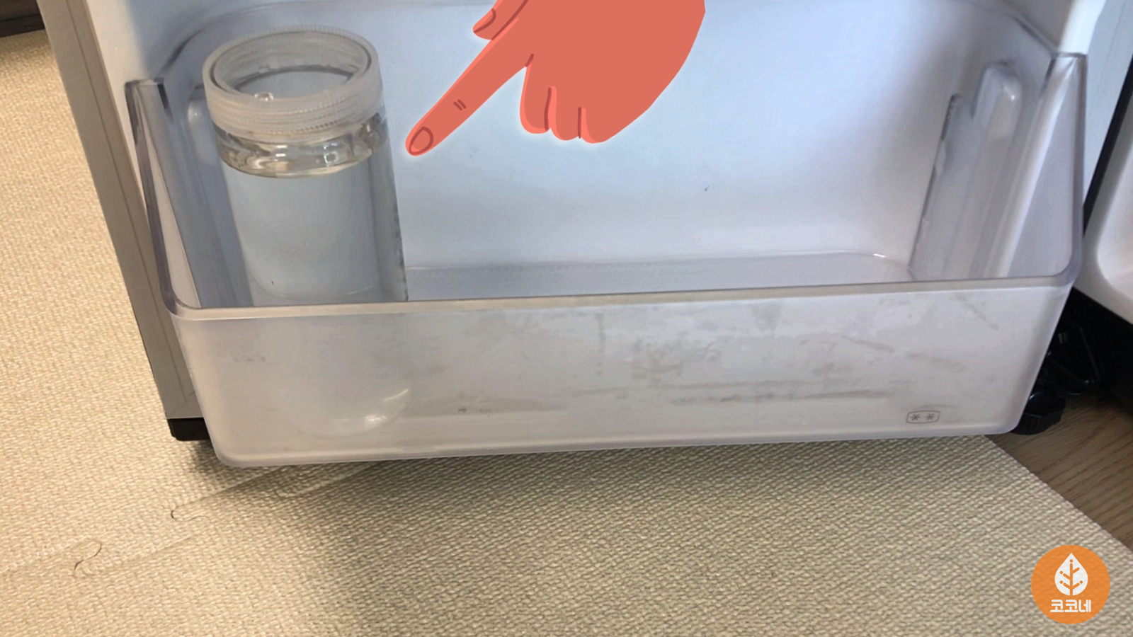 물을 가득 채운 물병을 냉동실에 세워서 넣었어요.