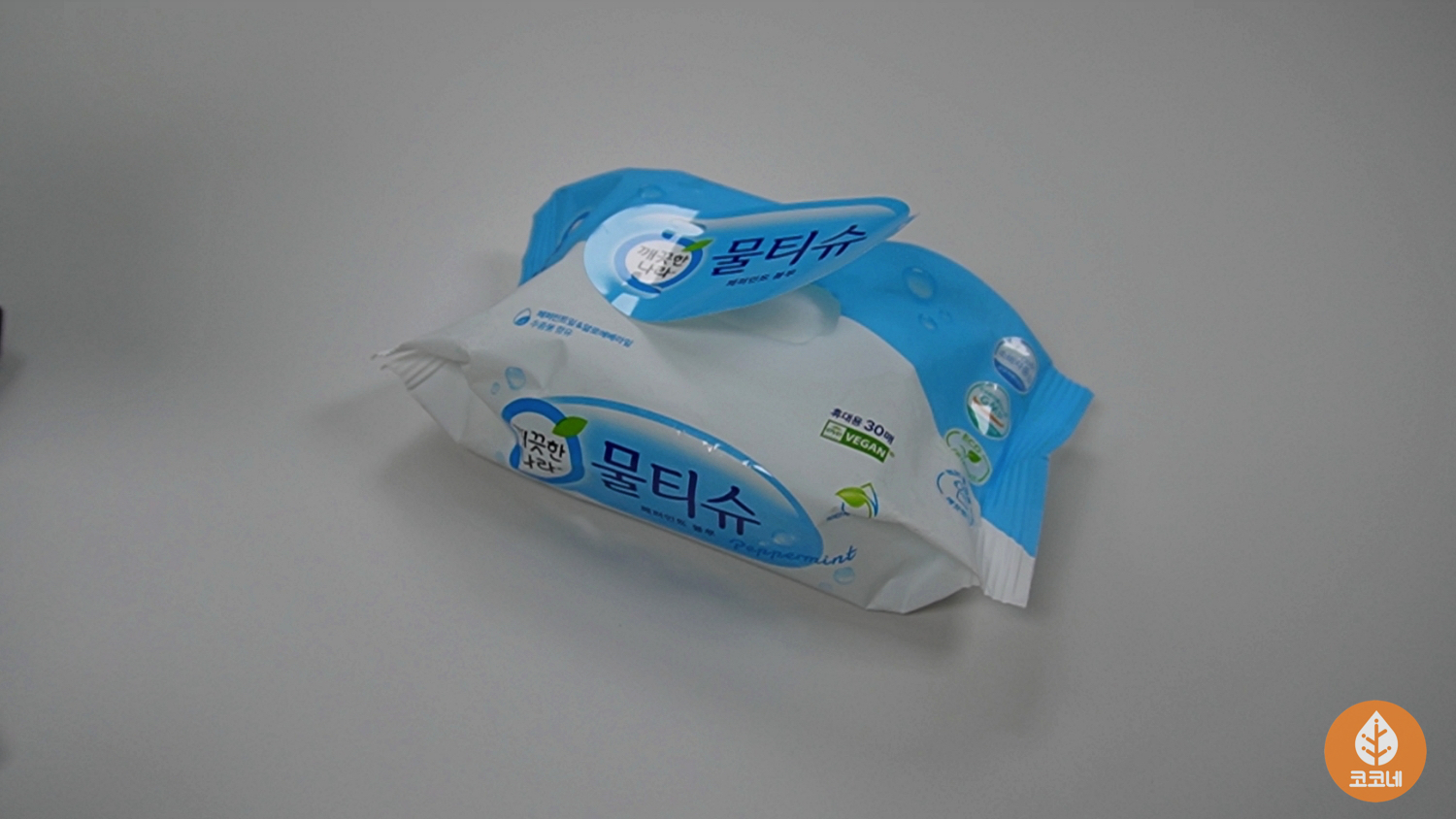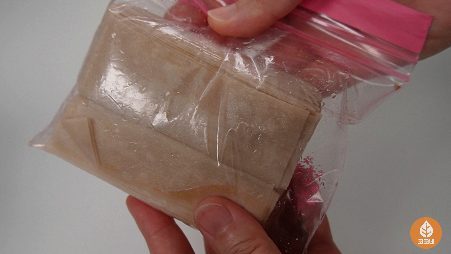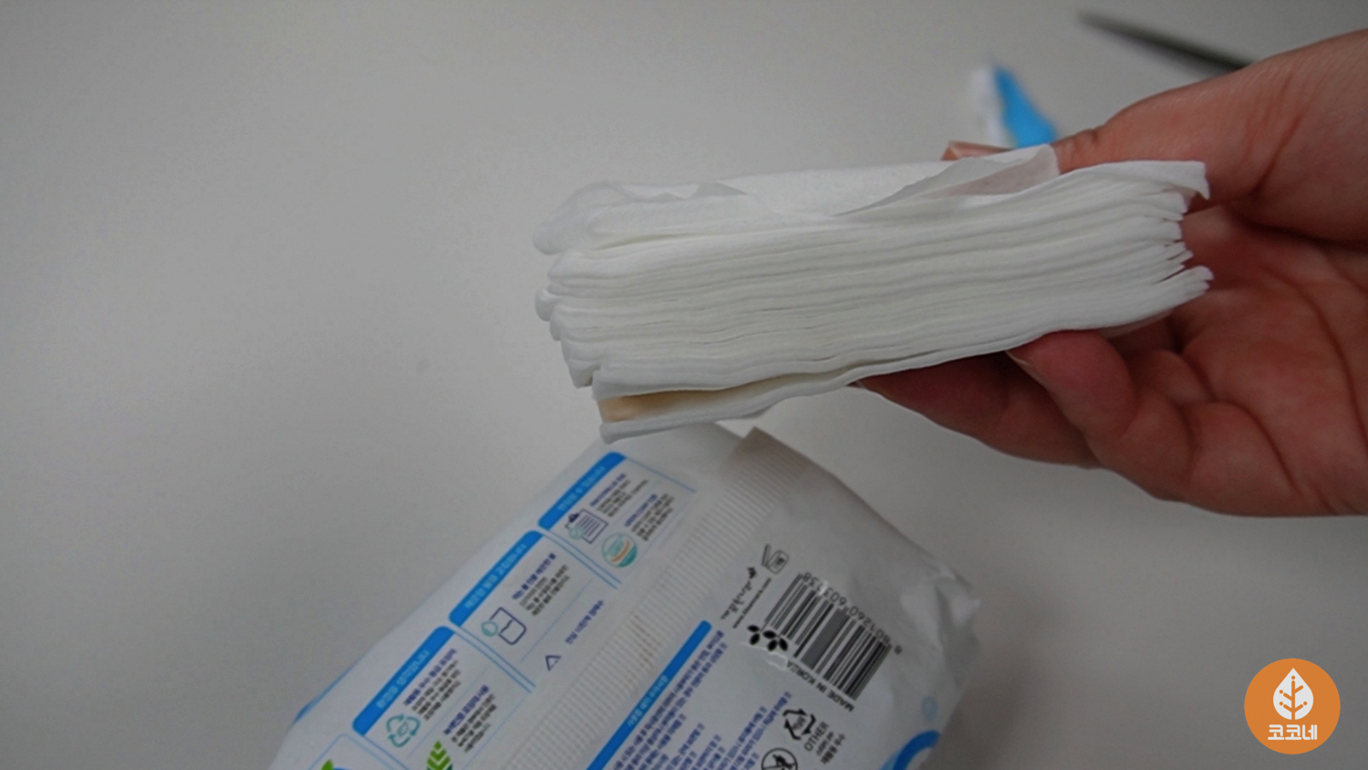 봉지를 잘라서 속에 들어있는 티슈만 꺼내고