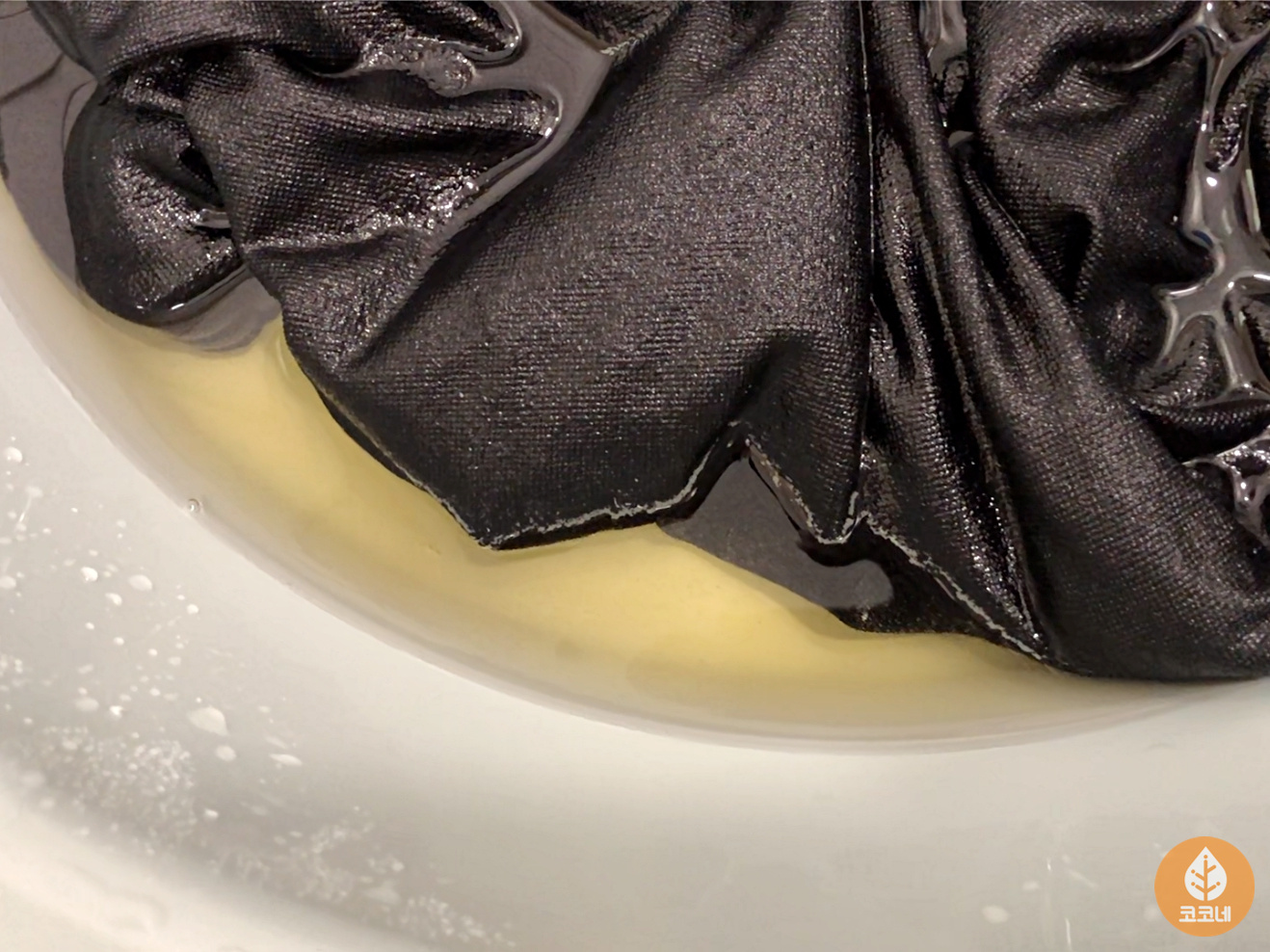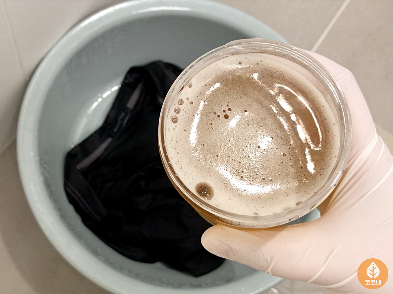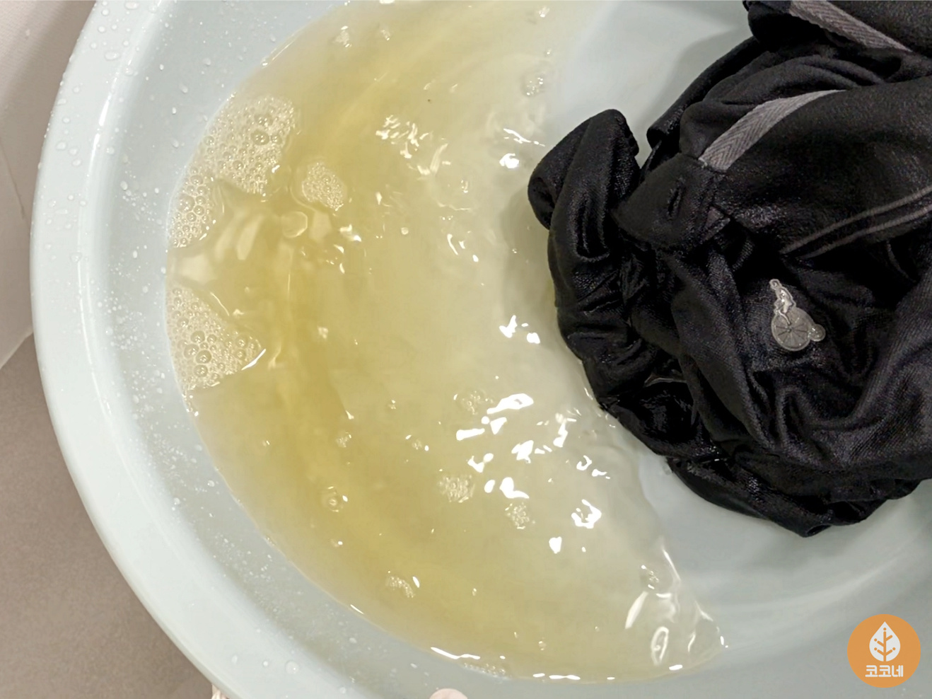 물빠진 검정색 옷을 20분쯤 담가주시고요.