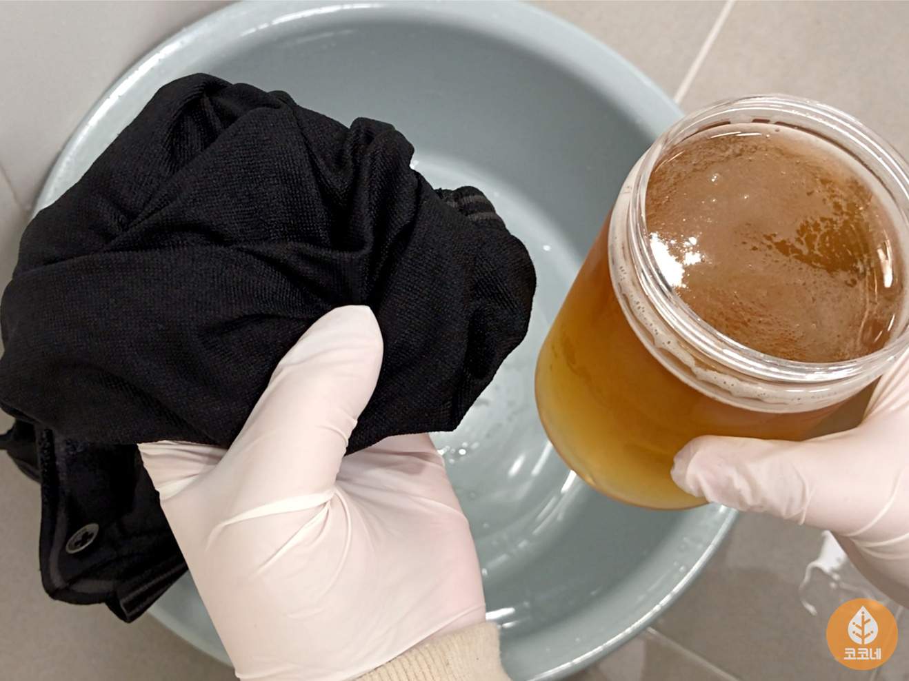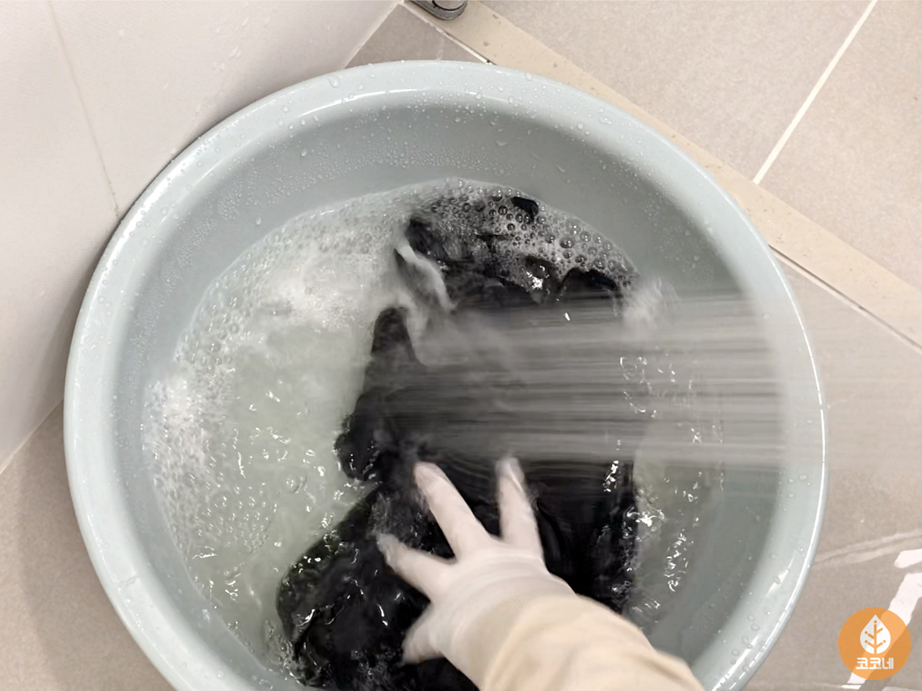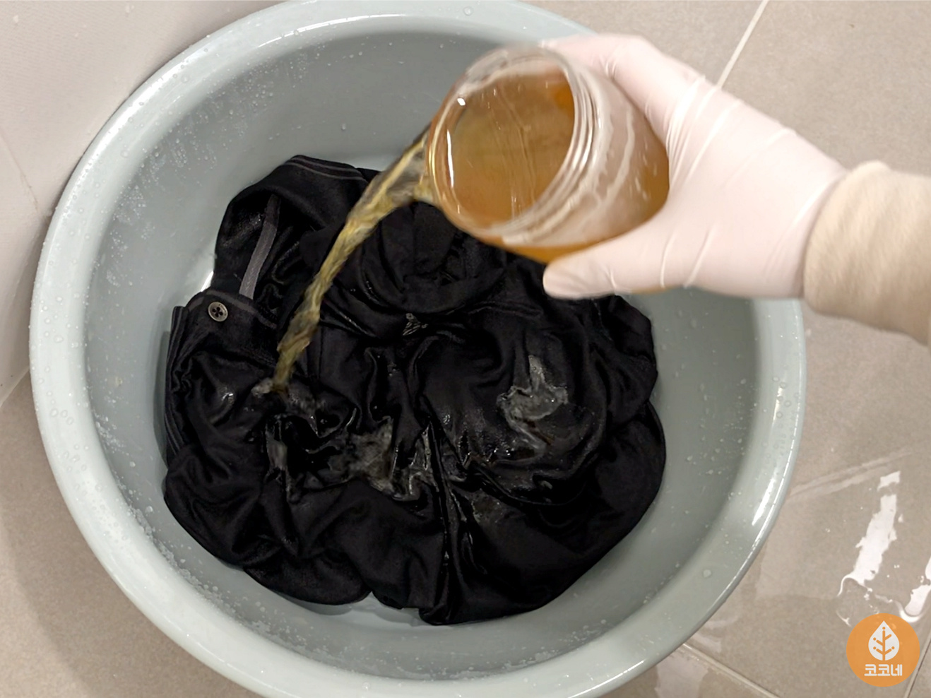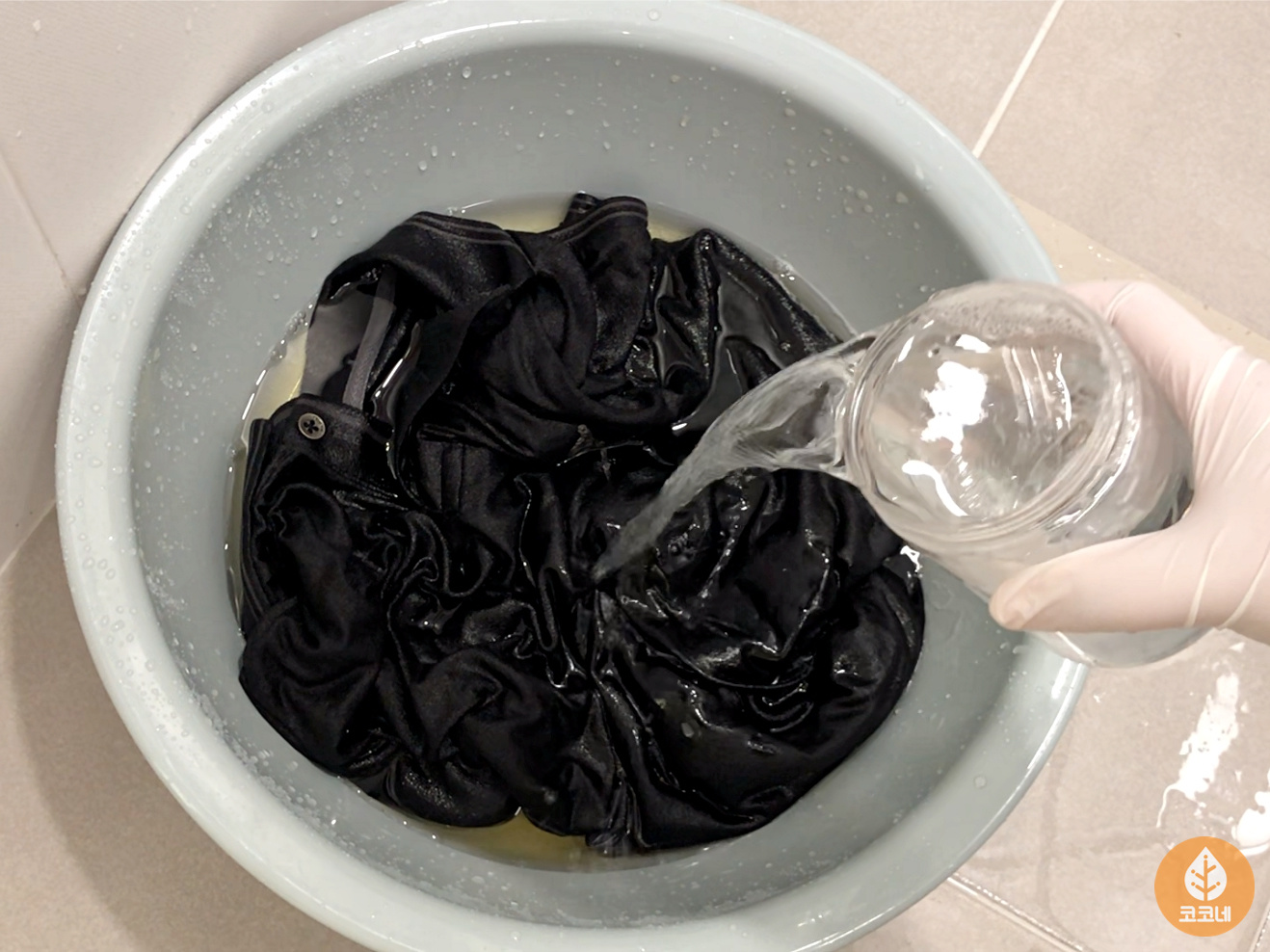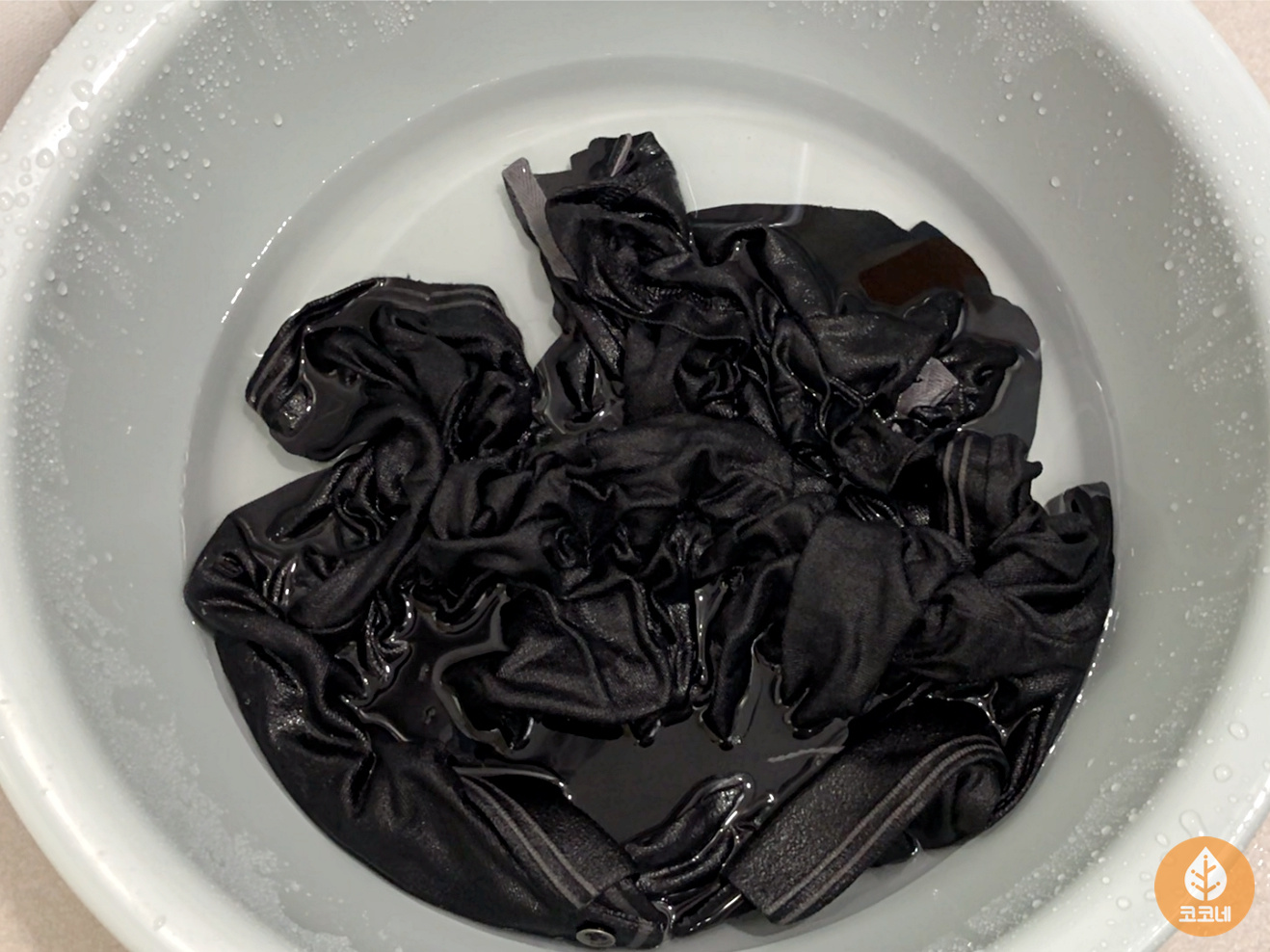 물빠진 검정색 옷을 20분쯤 담가주시고요.