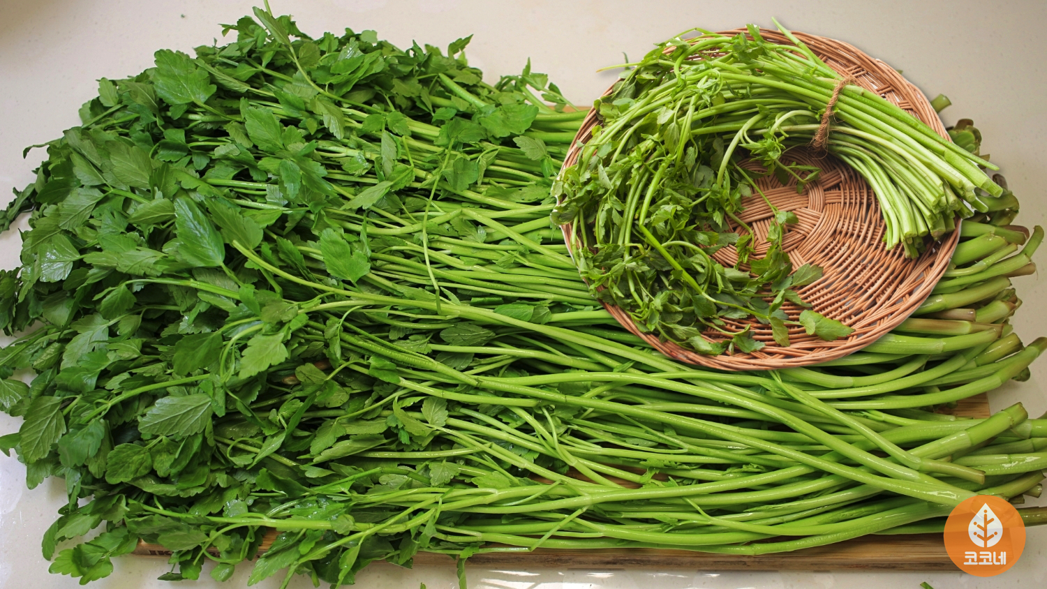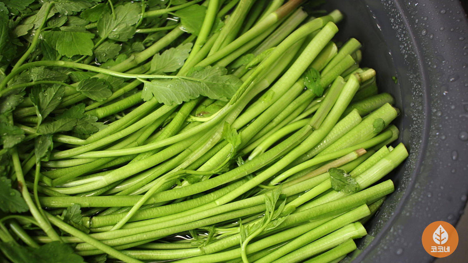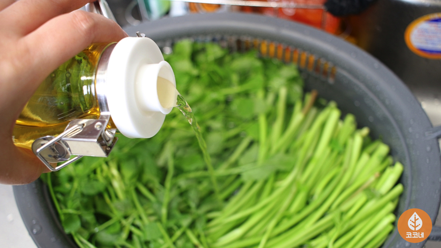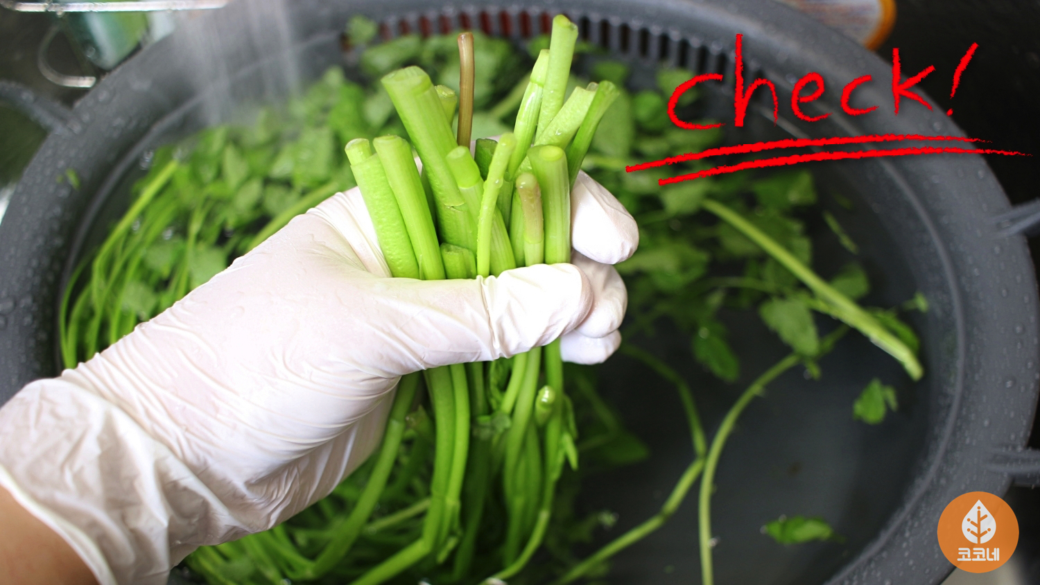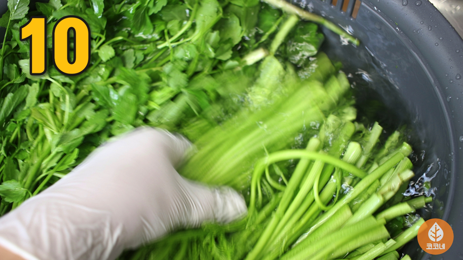 10분 뒤에 미나리줄기를 살살 흔들어서
