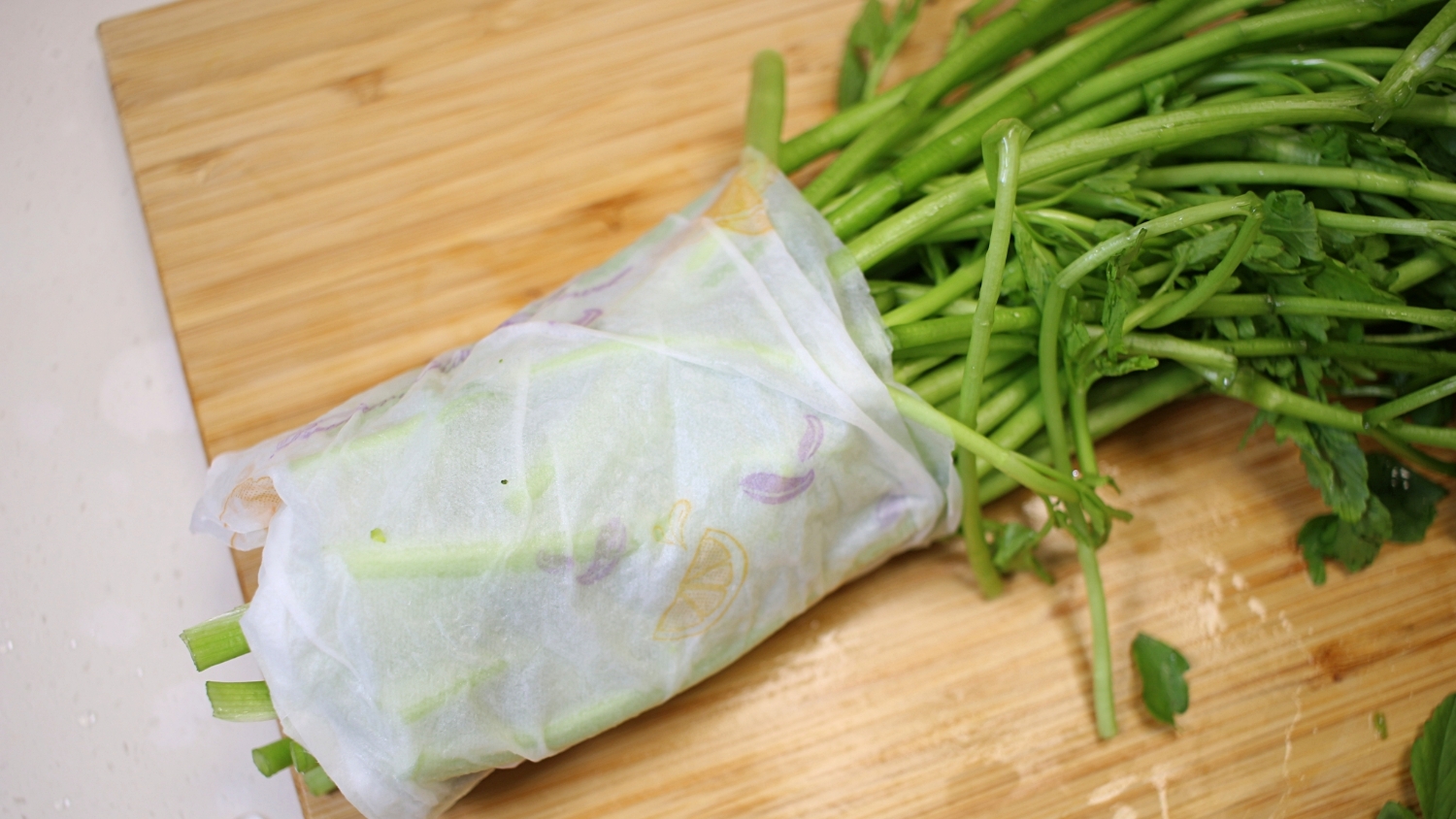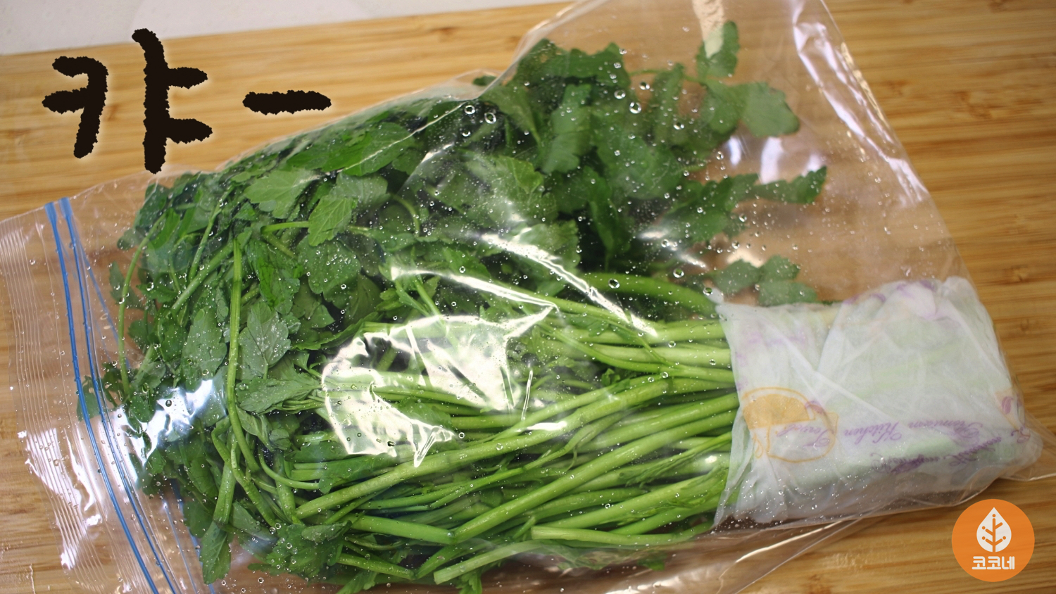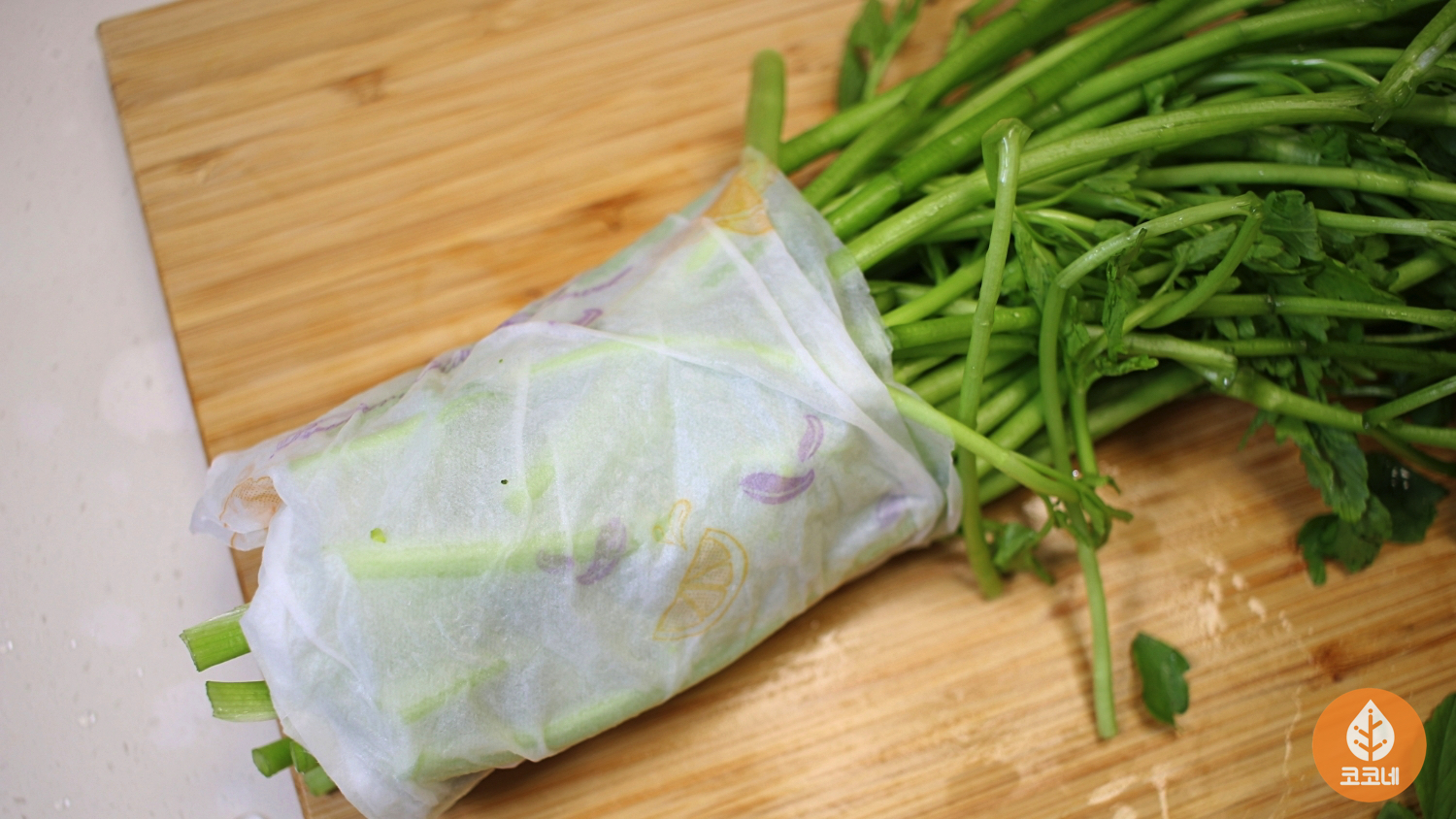 미나리를 키친타월로 감싸면 결과는 대박입니다!