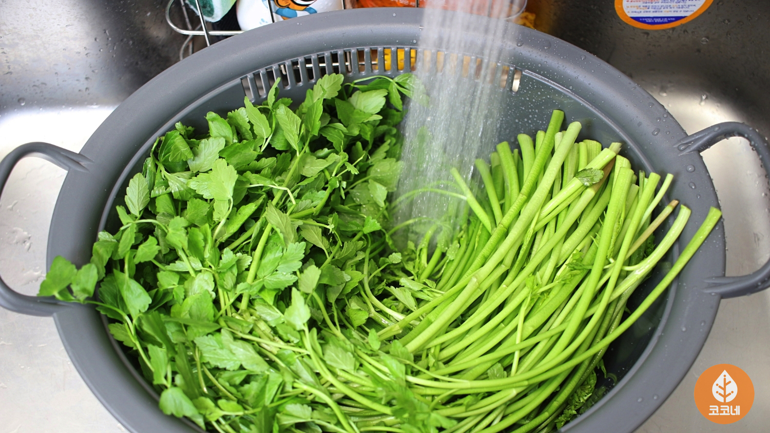그다음 미나리를 깨끗한 물로 헹궈줄 건데요.