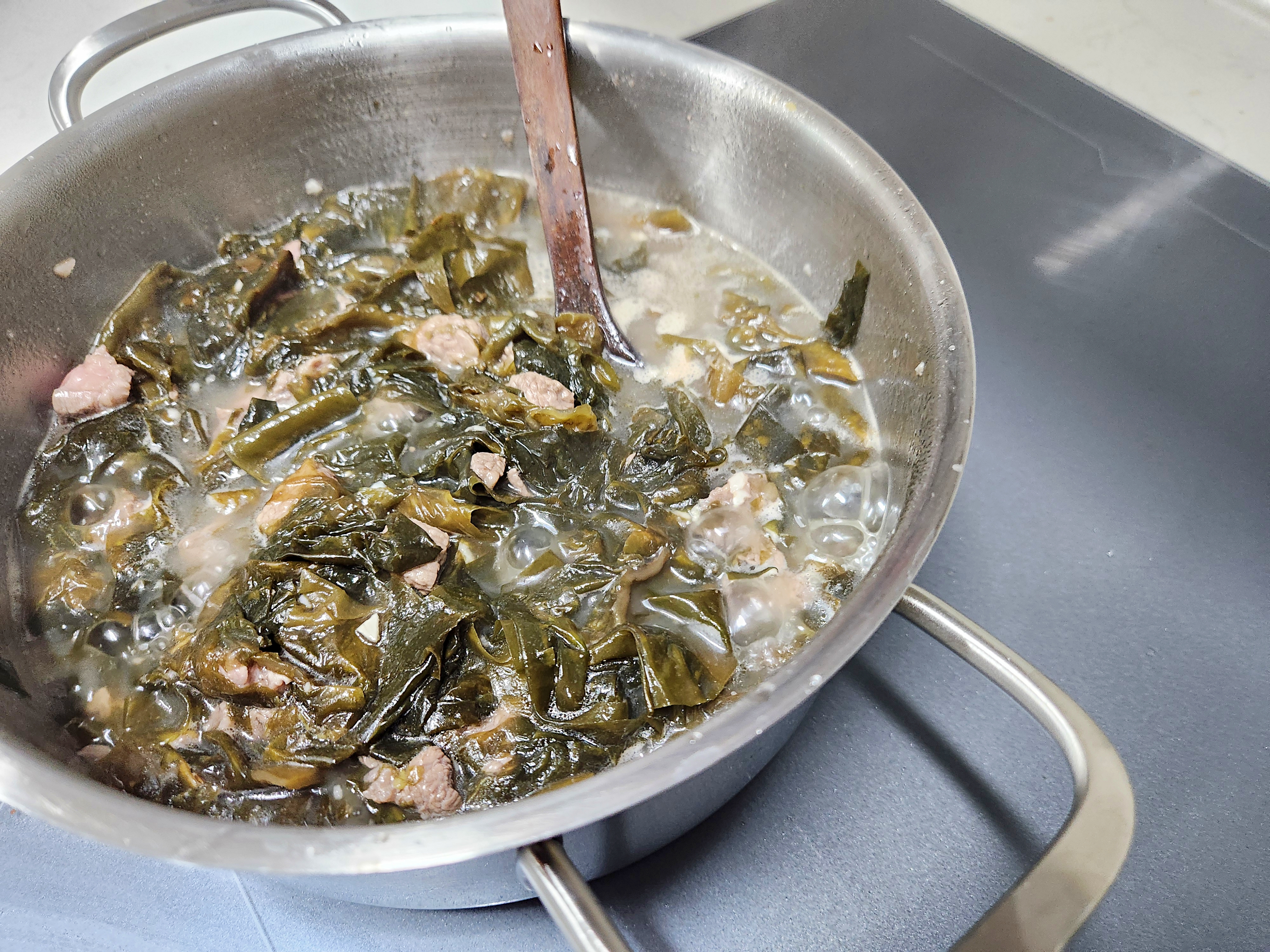 저는 여기서 맹물 대신 쌀뜨물을 사용해 더 고소하게 끓였어요.