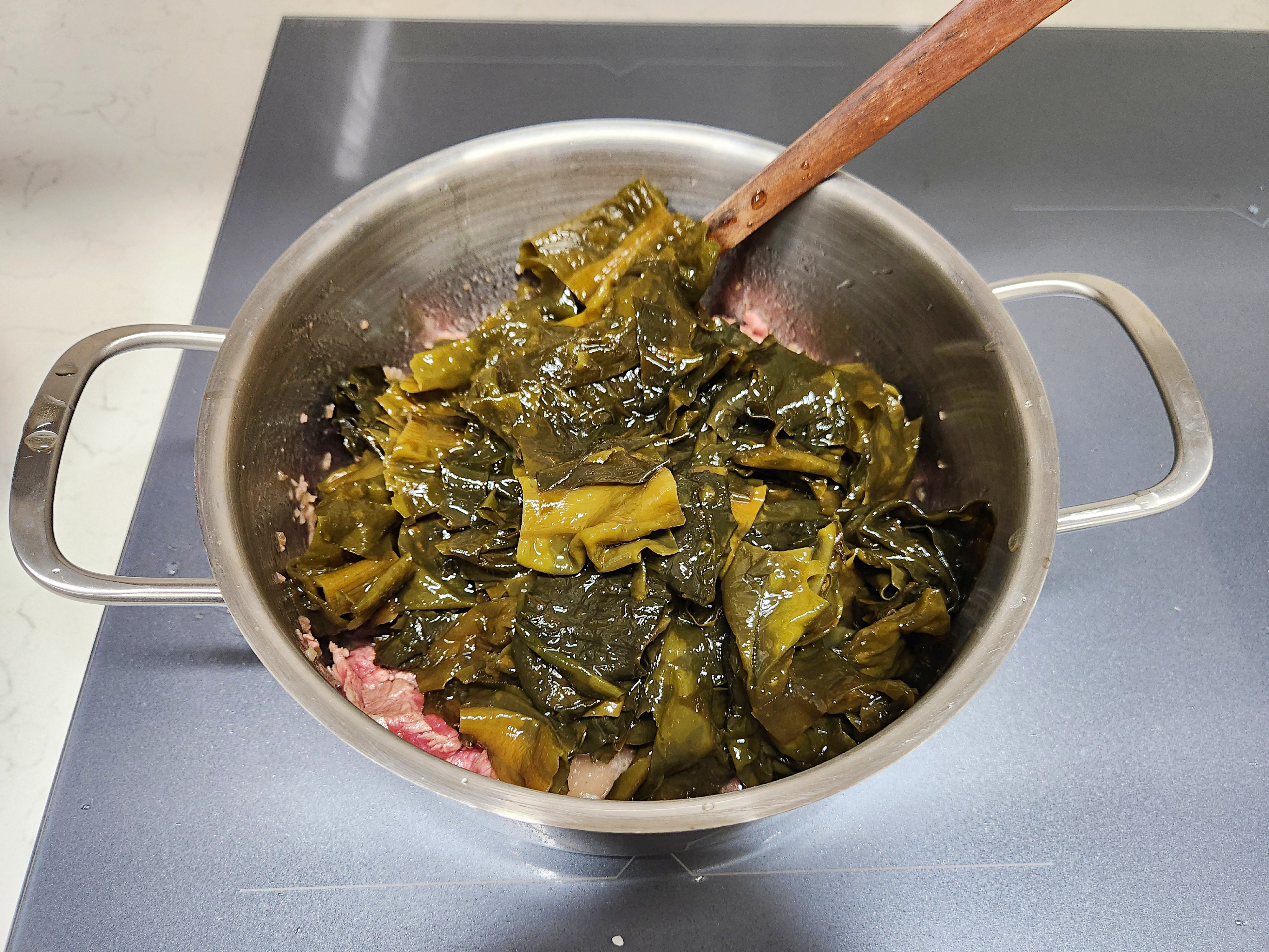 미역이 짙은 초록빛으로 변할 때까지 볶아주면