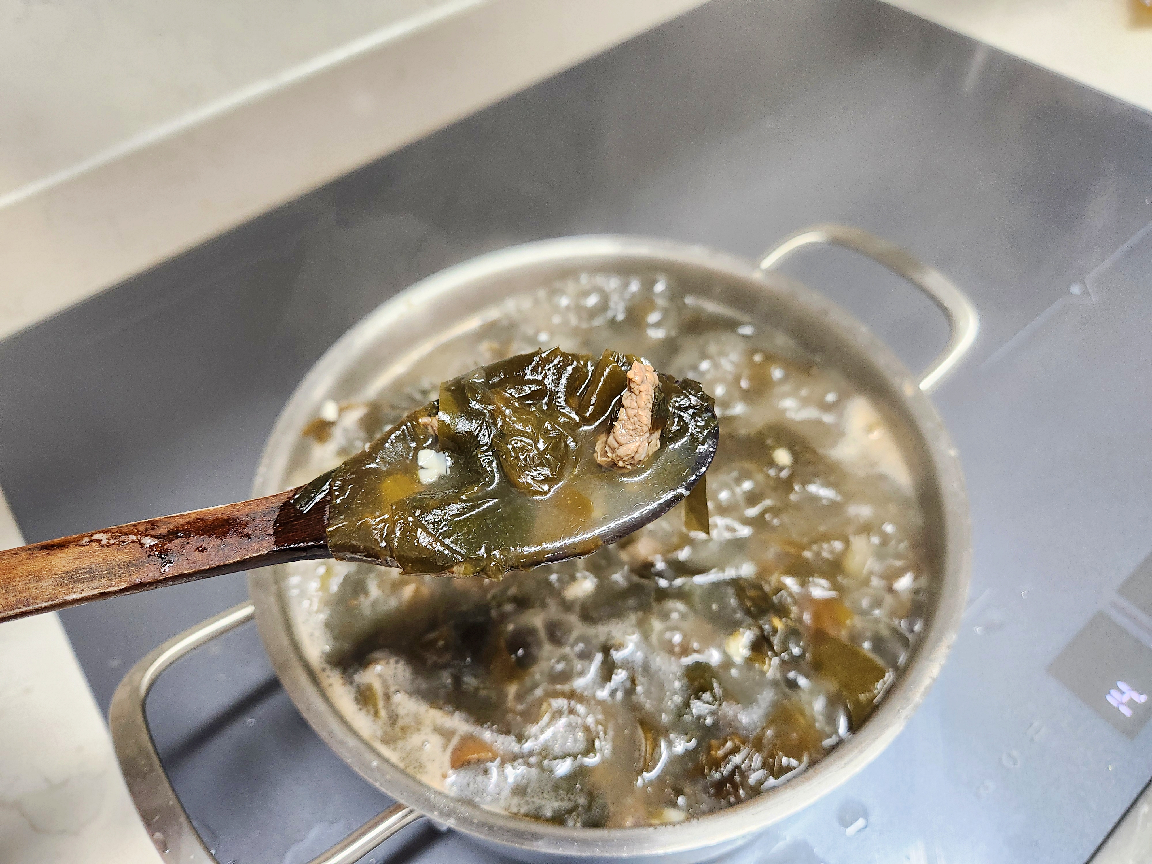 한층 깊고 진한 국물이 살아있는 미역국이 완성돼요.