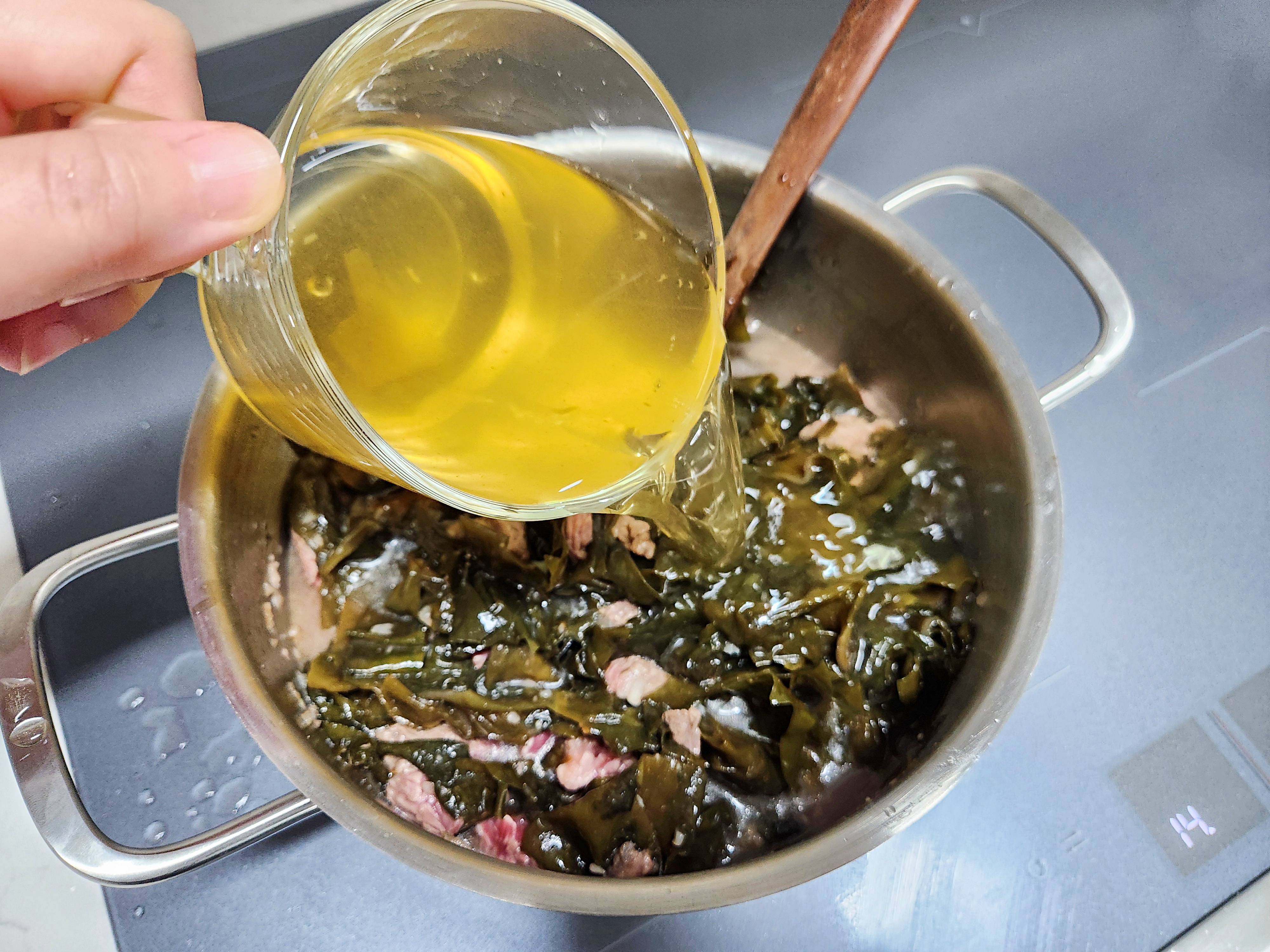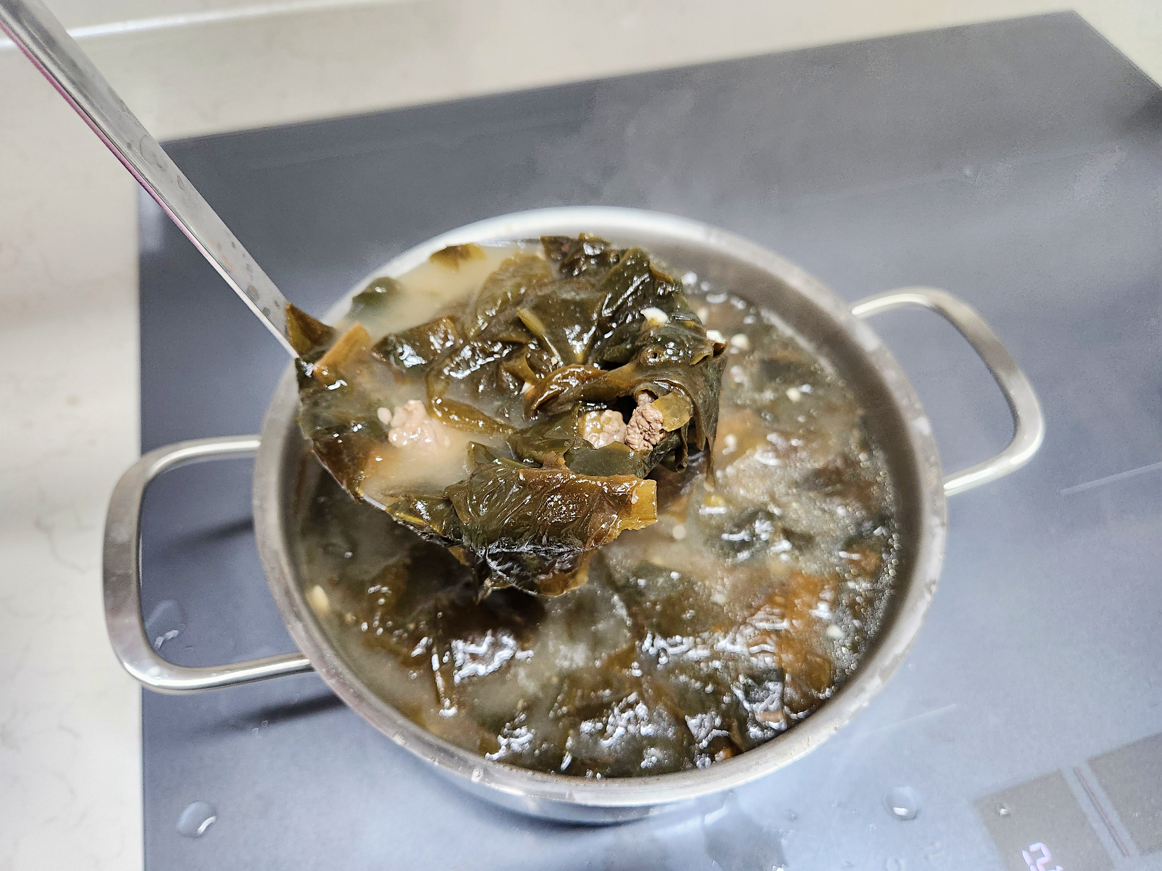 한층 깊고 진한 국물이 살아있는 미역국이 완성돼요.