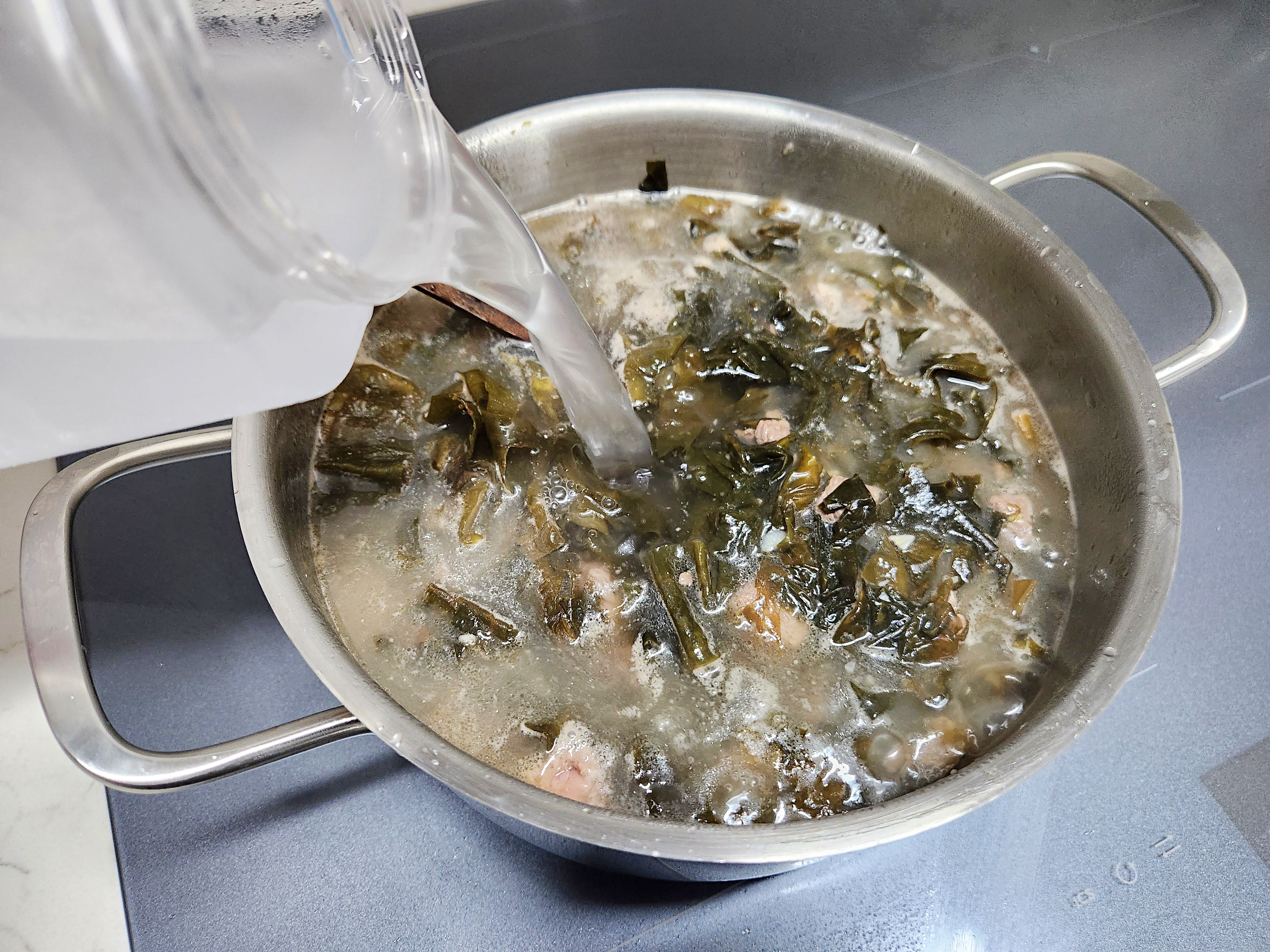 저는 여기서 맹물 대신 쌀뜨물을 사용해 더 고소하게 끓였어요.