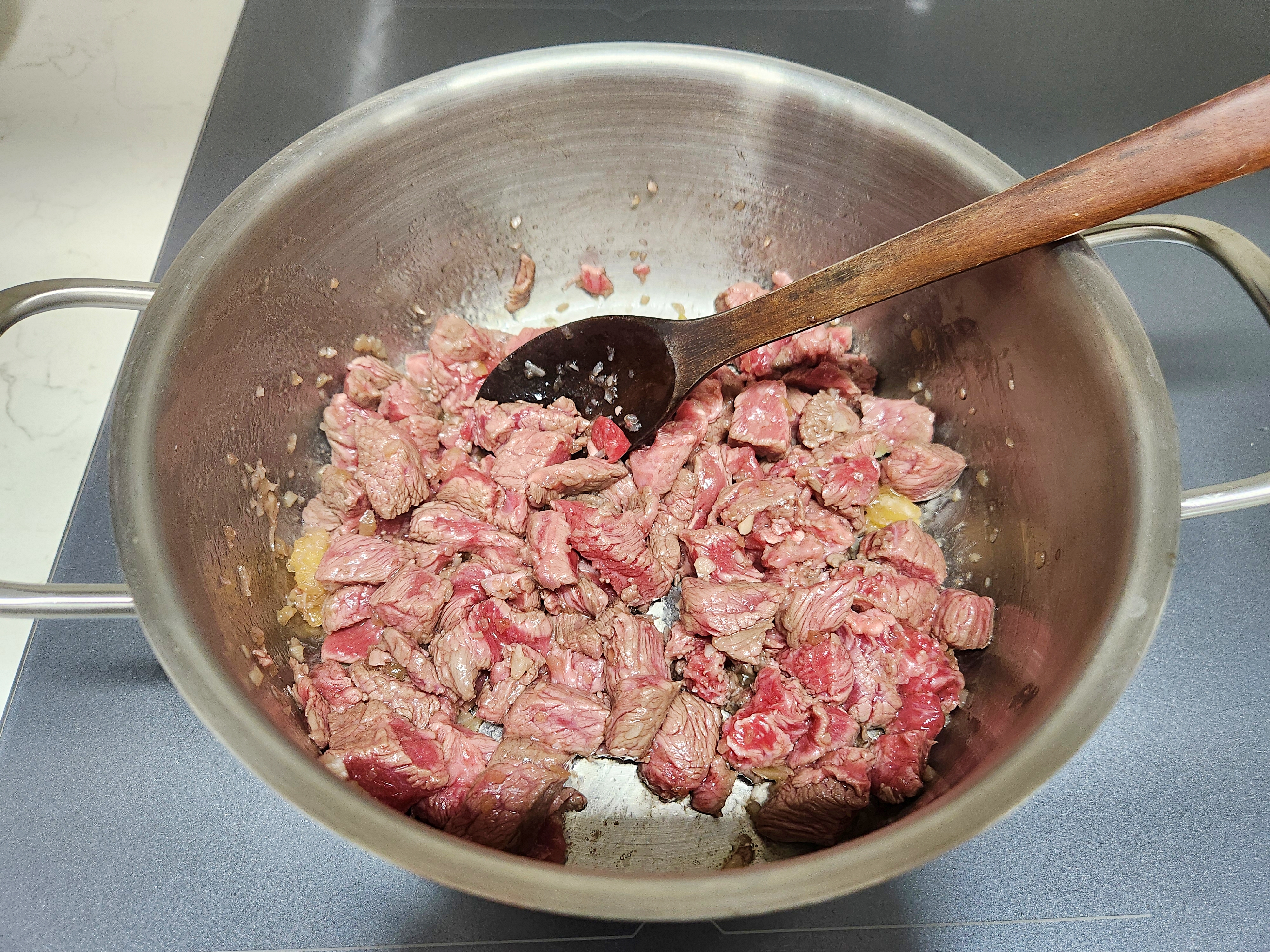 중불에서 고기가 반쯤 익을때까지 볶아줍니다.