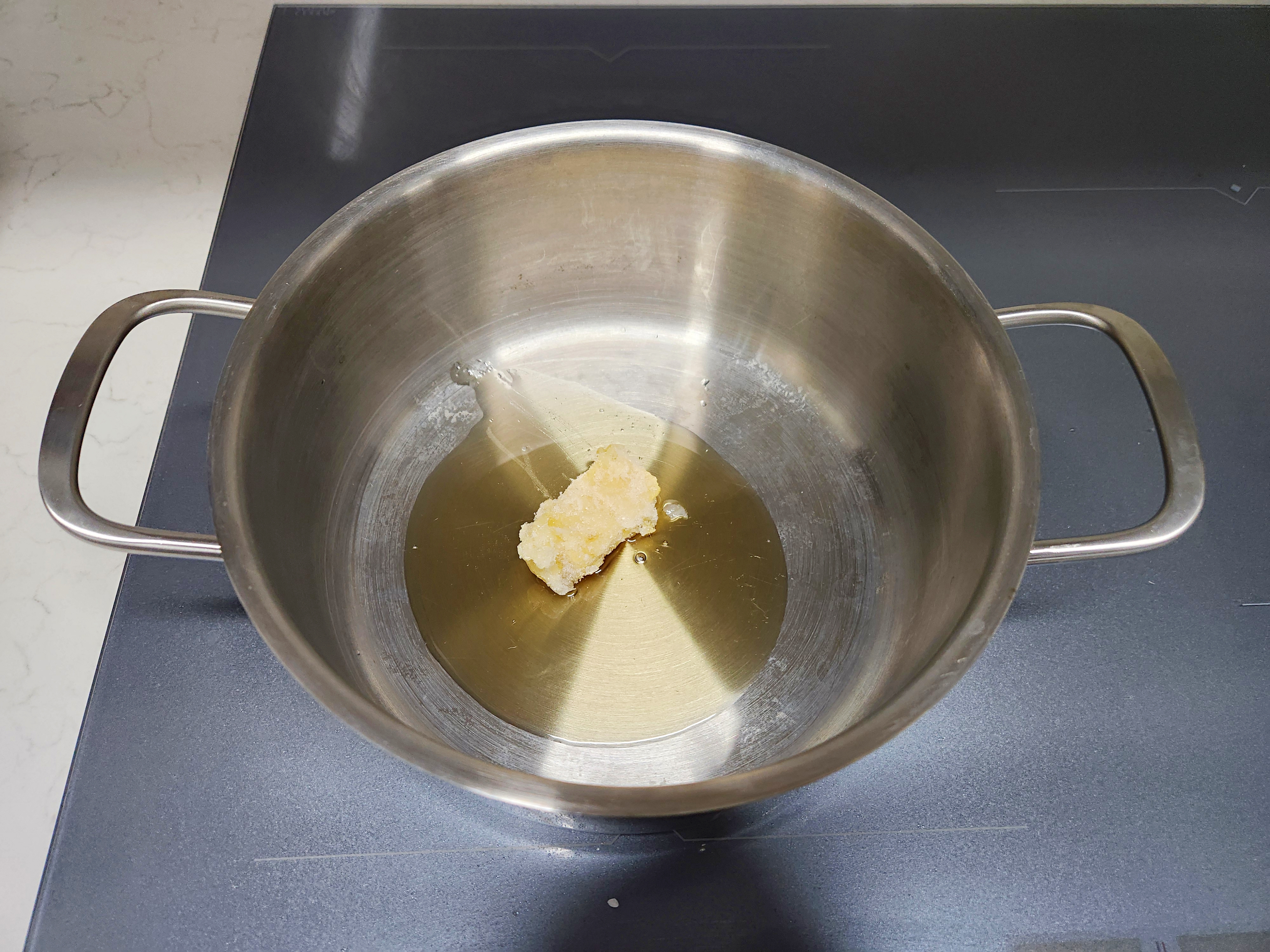 냄비에 참기름을 두르고 다진 마늘 한 스푼 듬뿍,