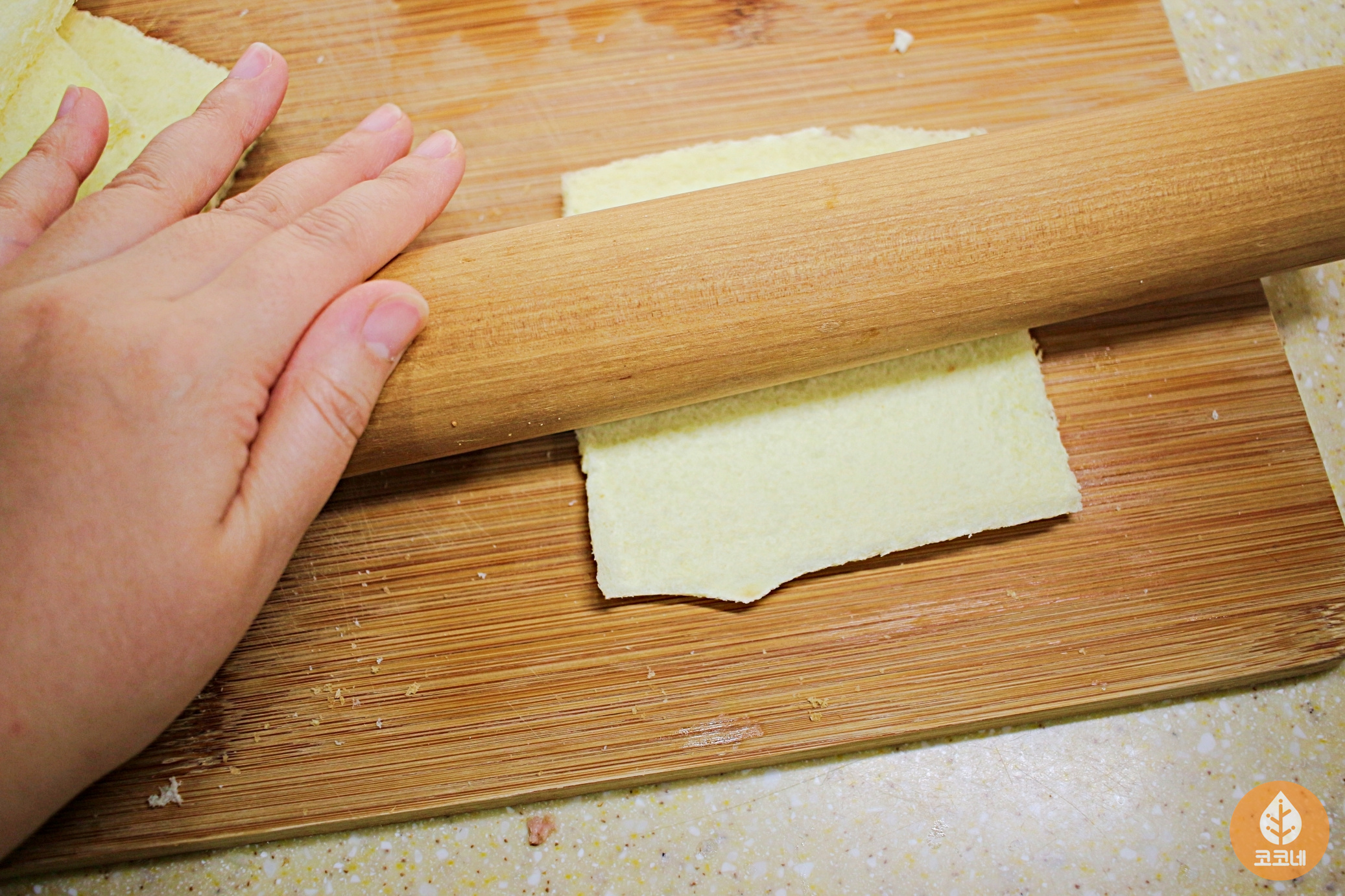 식빵은 테두리 자르고 납작하게 밀어주세요.