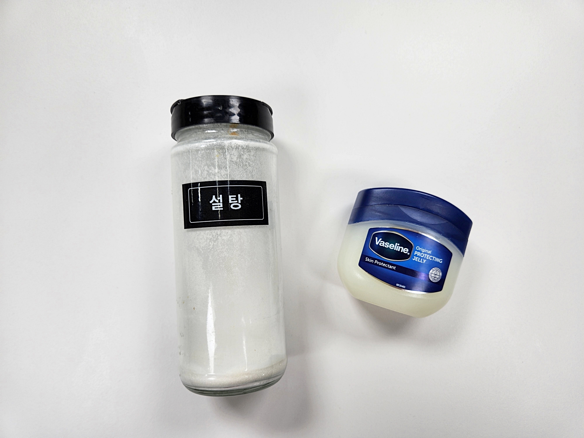 바세린과 설탕을 2:1 비율로 섞어주세요.