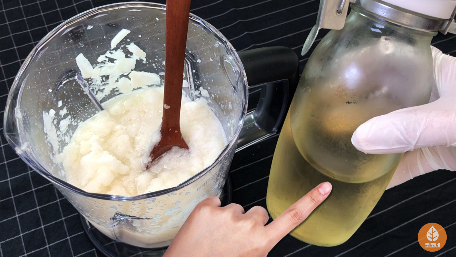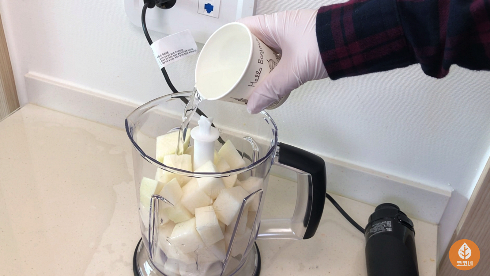 물을 추가하면 무가 더 곱게 잘 갈려요~