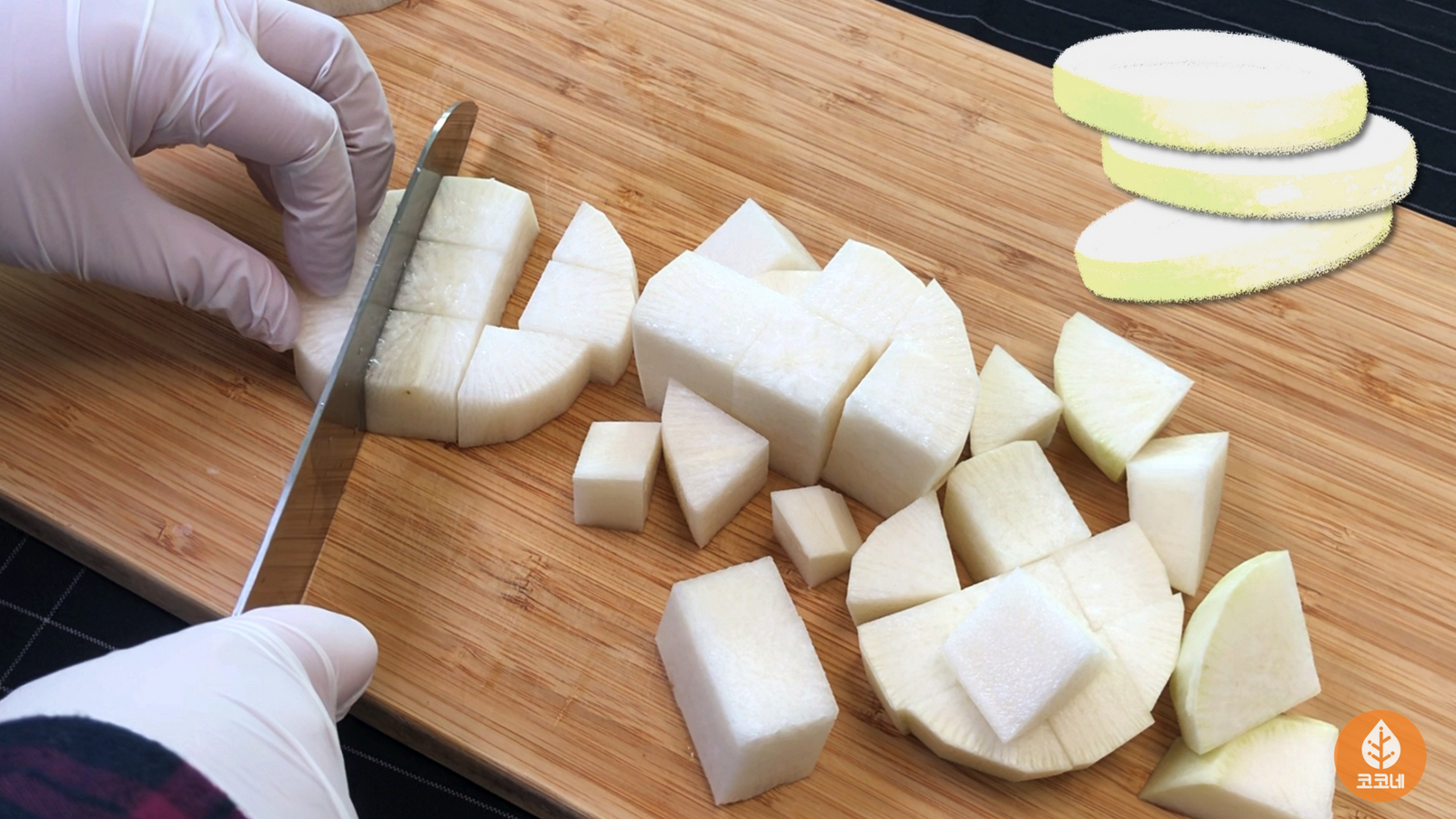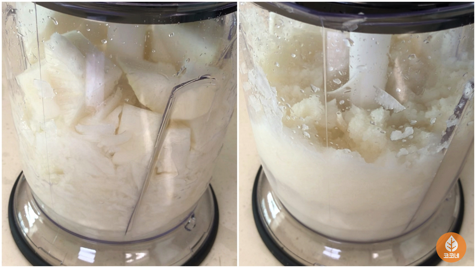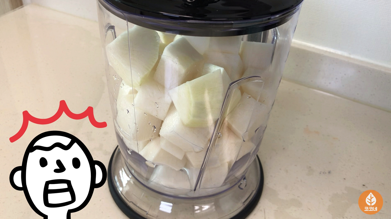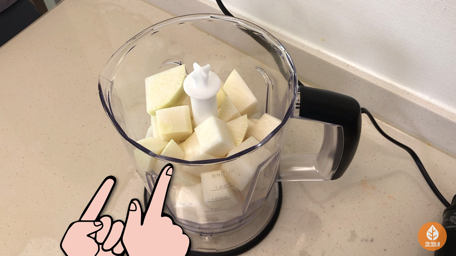 물을 추가하면 무가 더 곱게 잘 갈려요~
