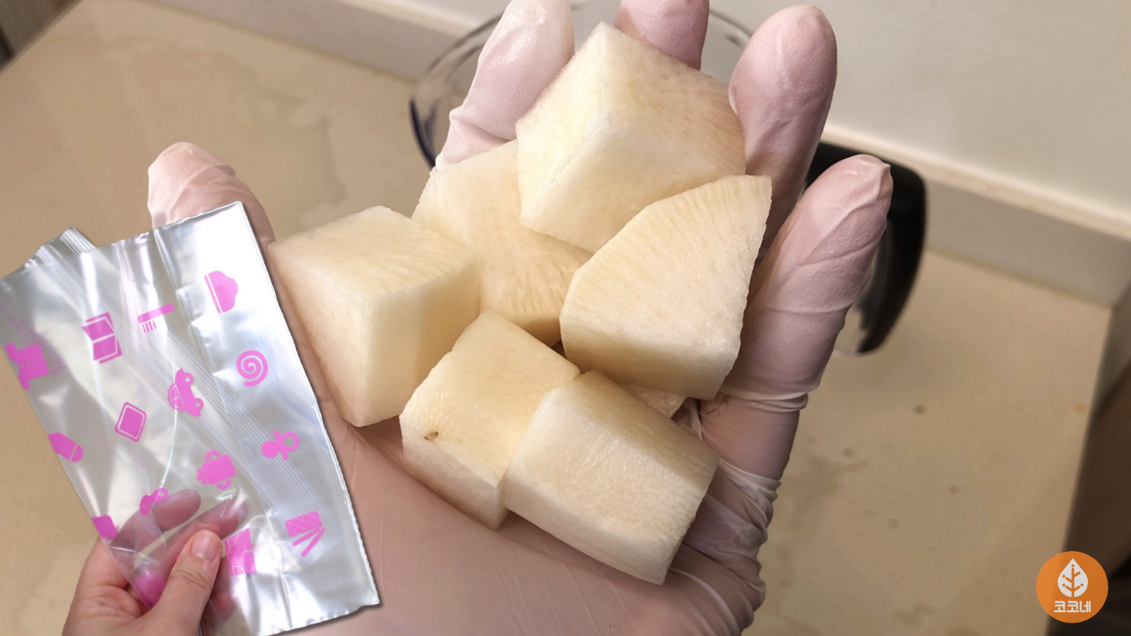 냉동실에 넣어서 얼렸다가 꽁꽁 얼면