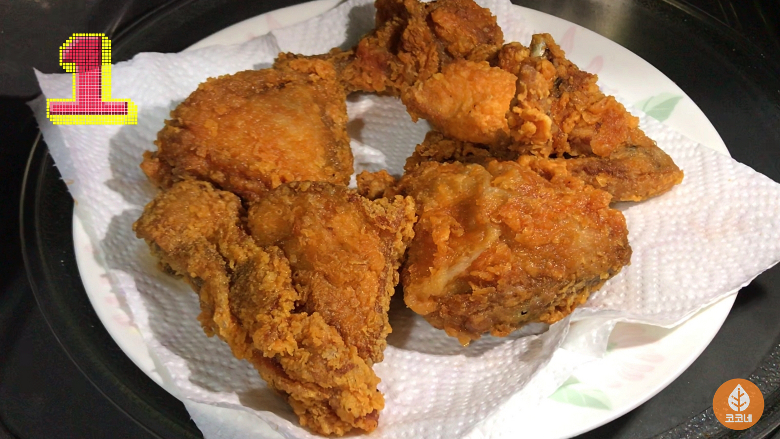 전자레인지로 데운 치킨이에요.