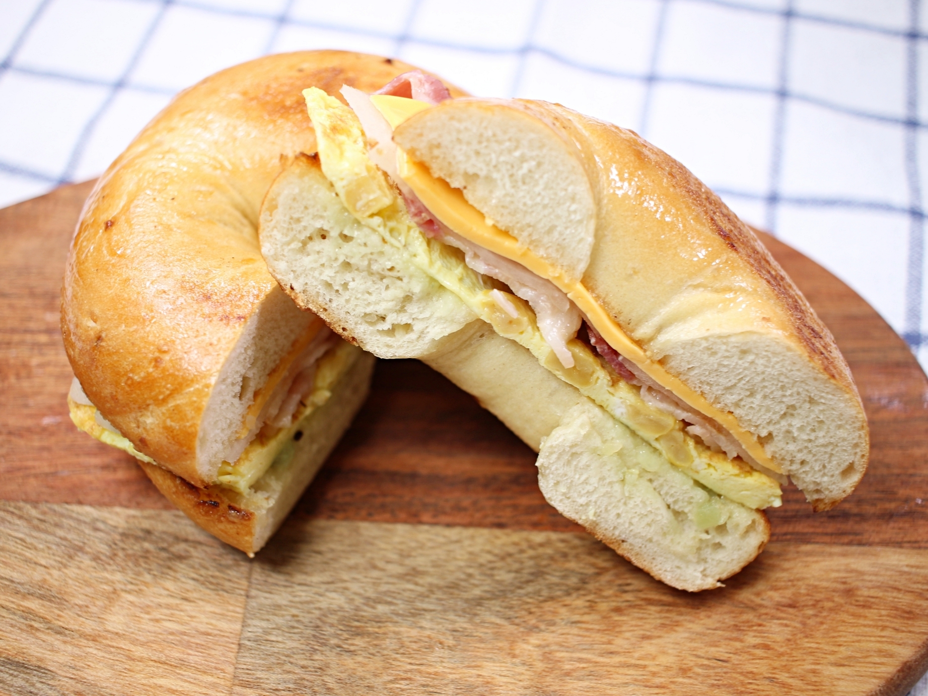 나머지 베이글 반쪽으로 덮어서 마무리하면