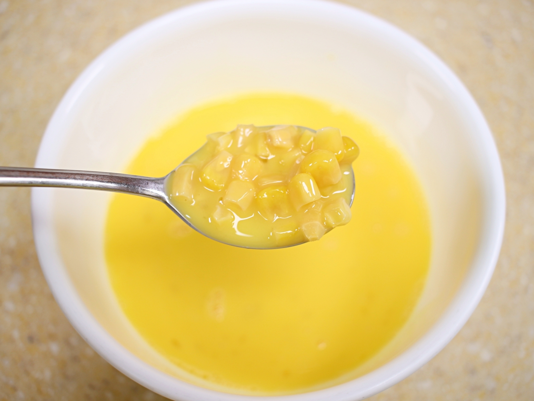 계란 풀고 캔옥수수 넣어서 골고루 섞어주시고요.