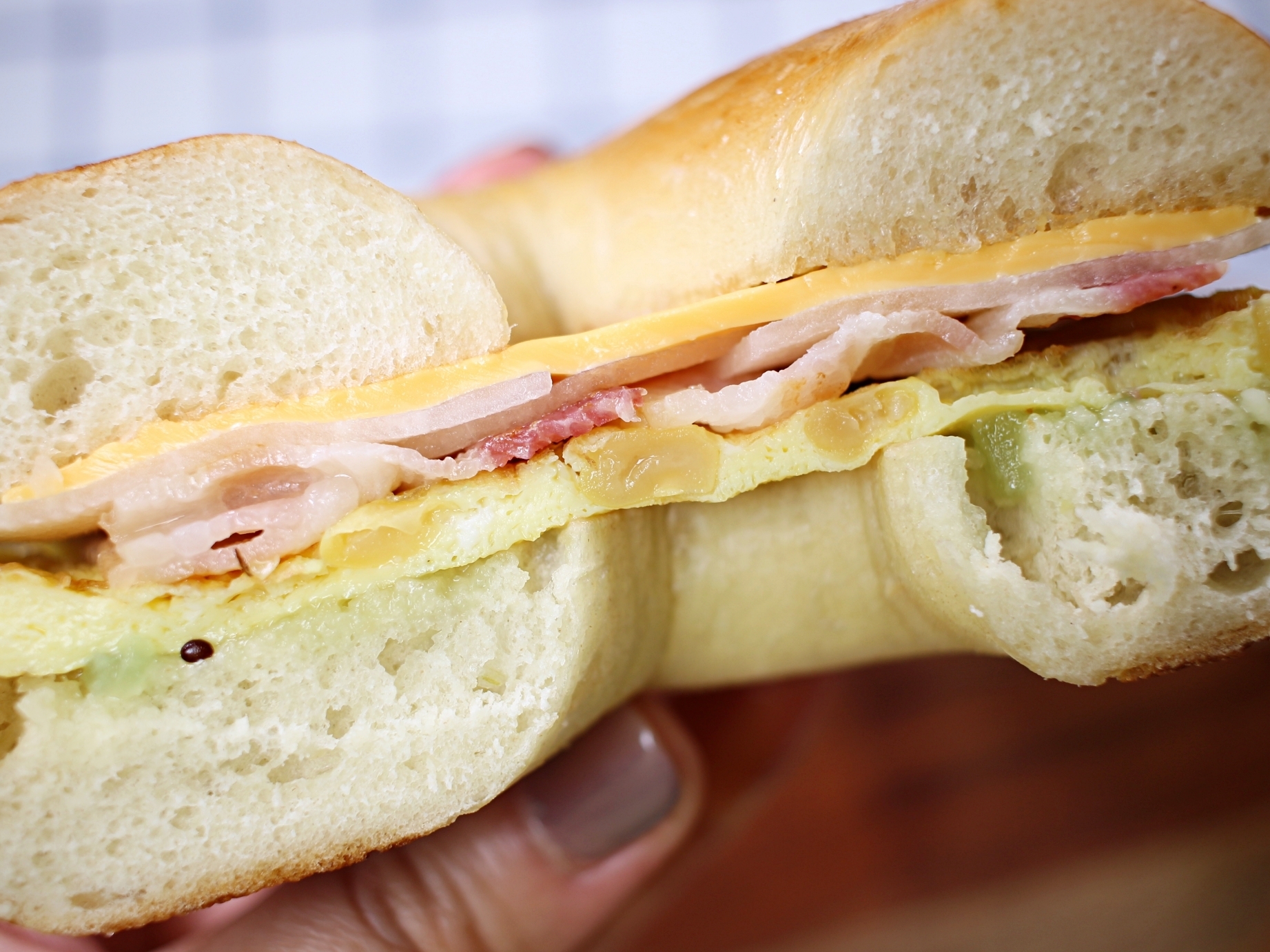 나머지 베이글 반쪽으로 덮어서 마무리하면