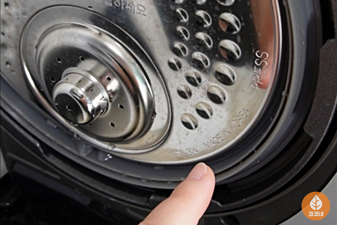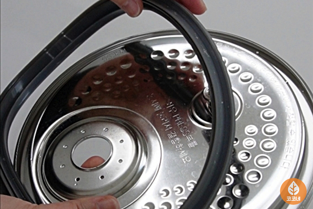밥솥 내부 뚜껑에 픽스된 고무패킹은