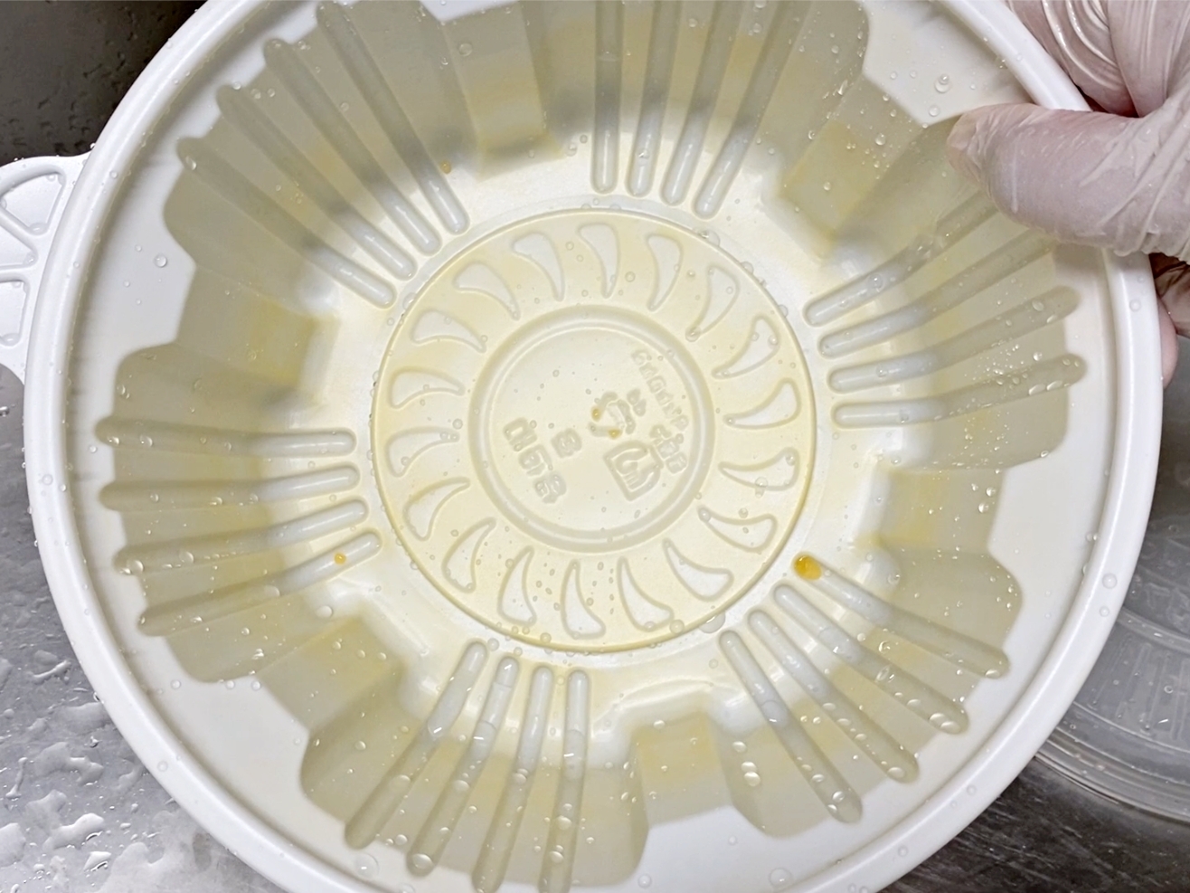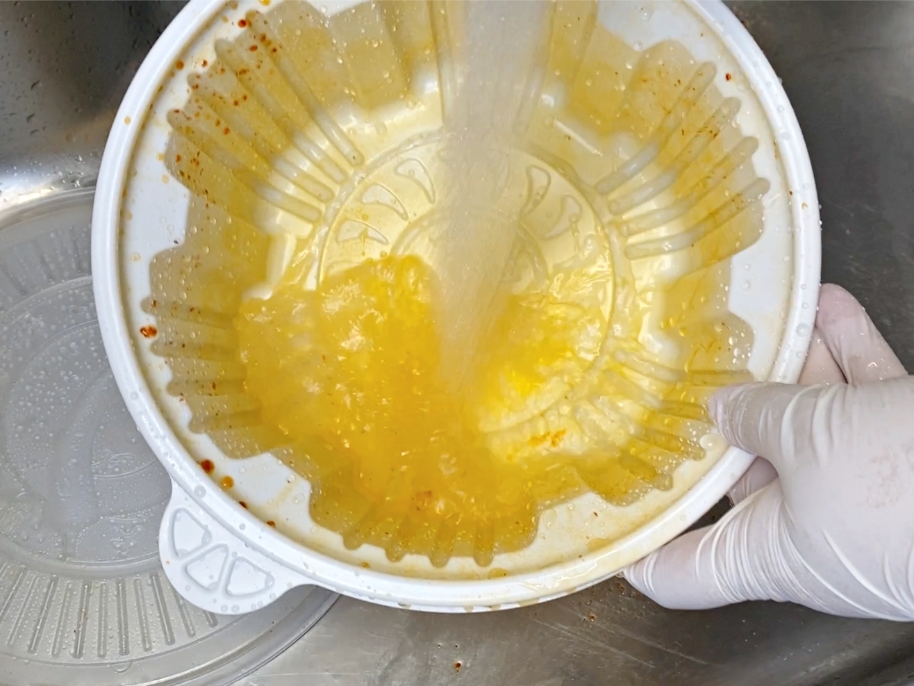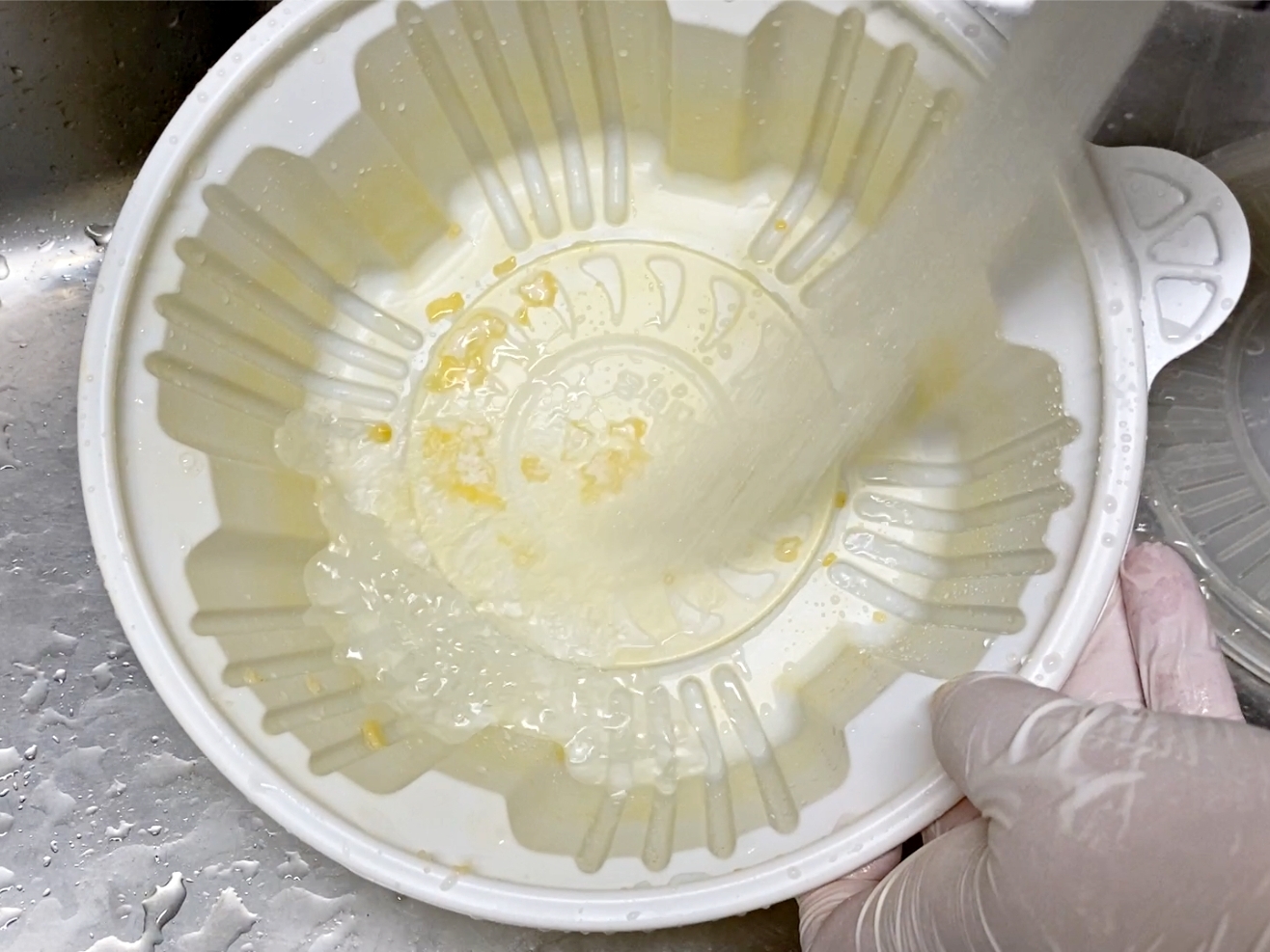 배달용기를 따뜻한 물로 한번 헹궈주시고요.