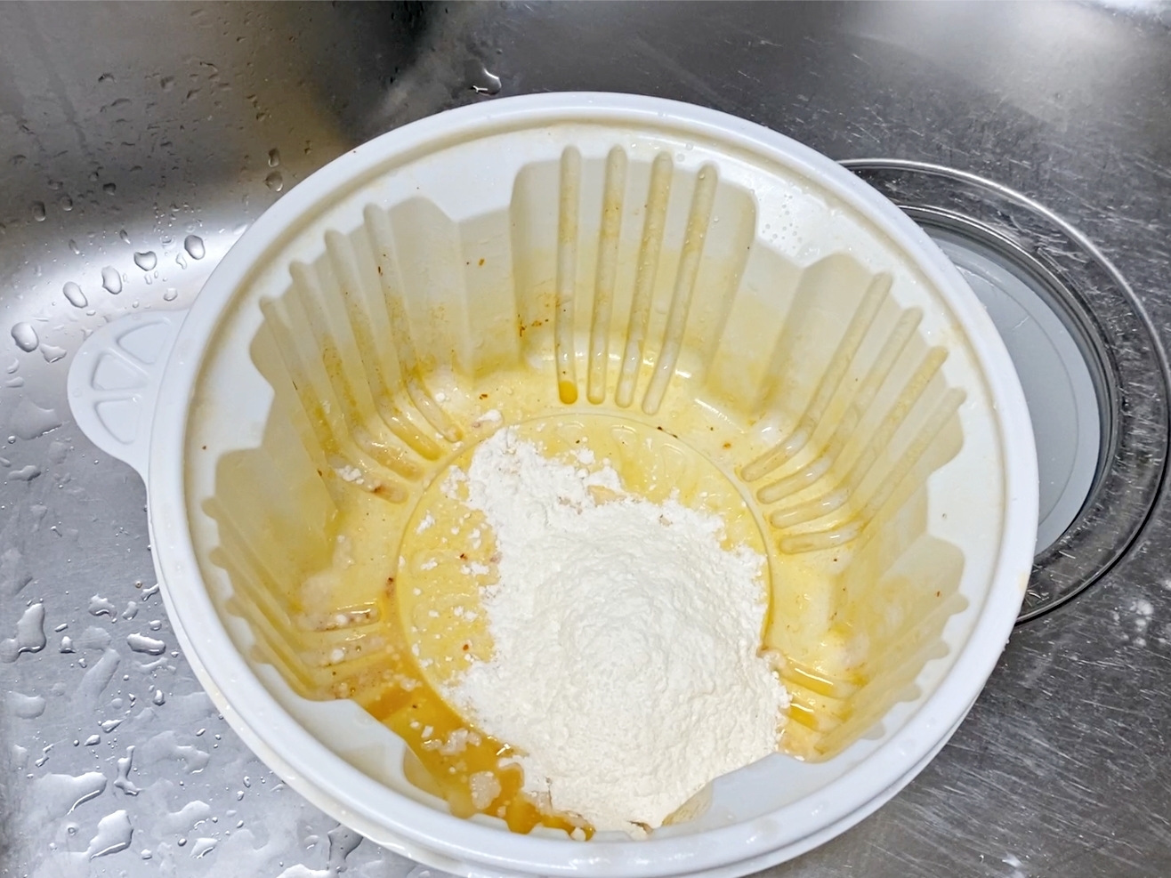충분히 흔든 다음 밀가루물을 따라버리고