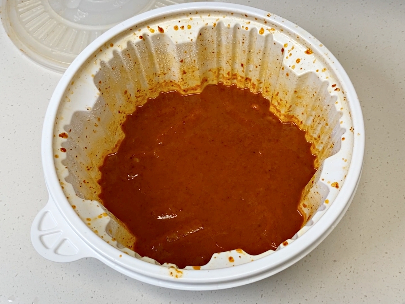 떡볶이 국물로 빨갛게 얼룩진 배달용기를