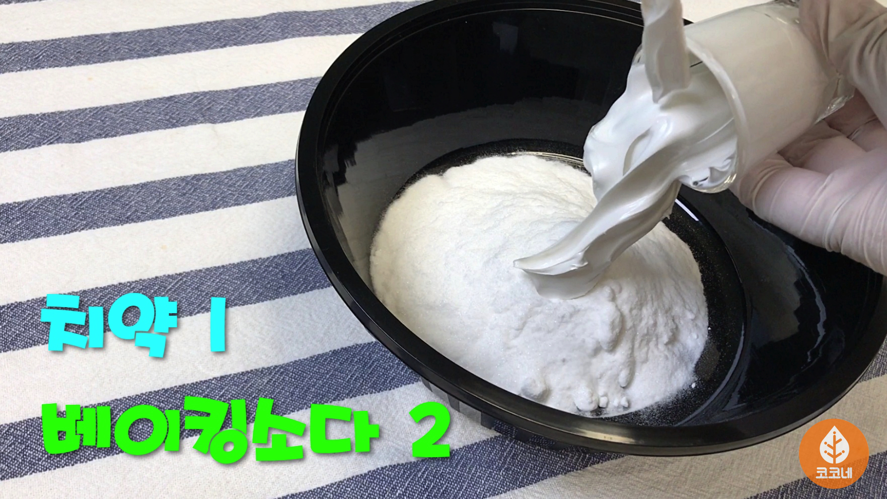 베이킹소다는 소주컵으로 2컵을 채워주세요.