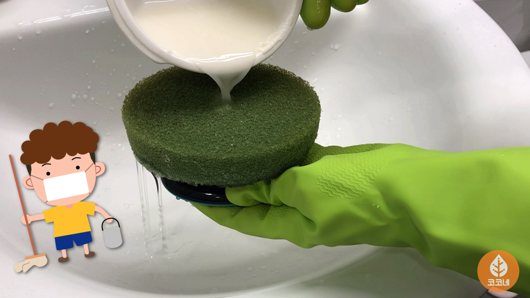 수세미에 비눗물을 묻혀서 구석구석 닦으면