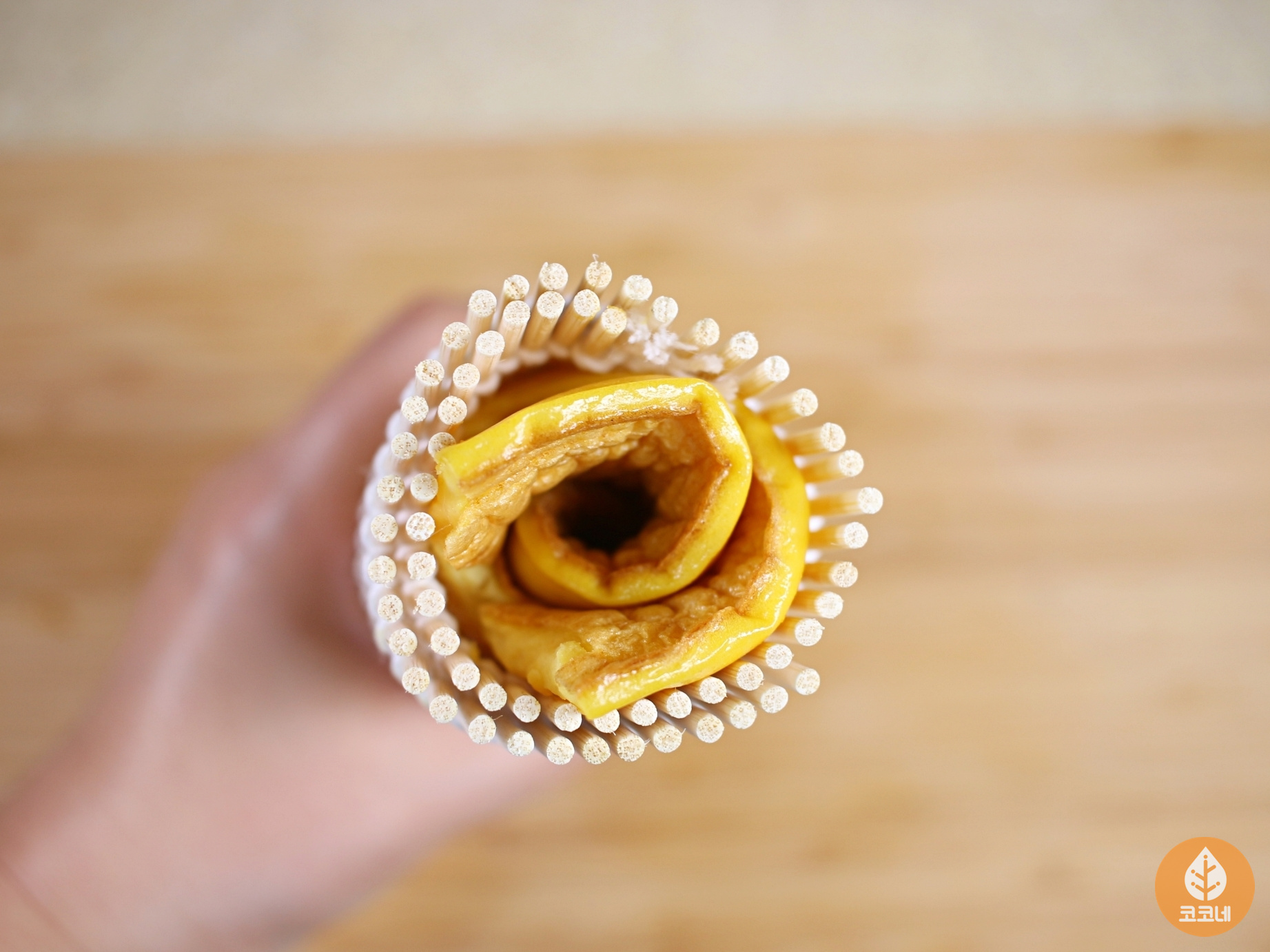 김발에 말린 상태 그대로 식을 때까지 기다려주세요.