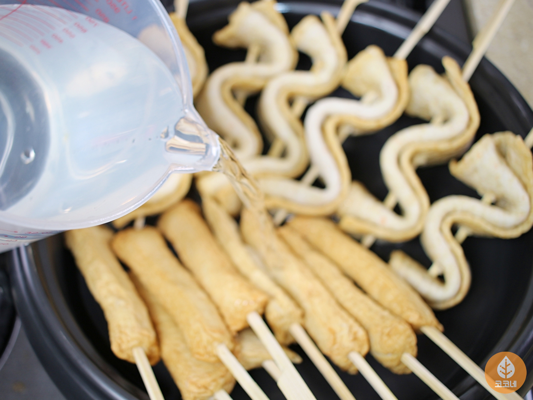 어묵이 잠길랑 말랑하게 물을 부어주세요.