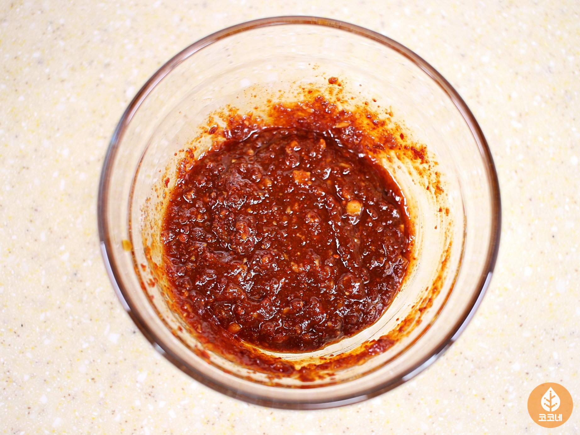 양념은 고추장, 간장, 고춧가루, 다진마늘, 설탕