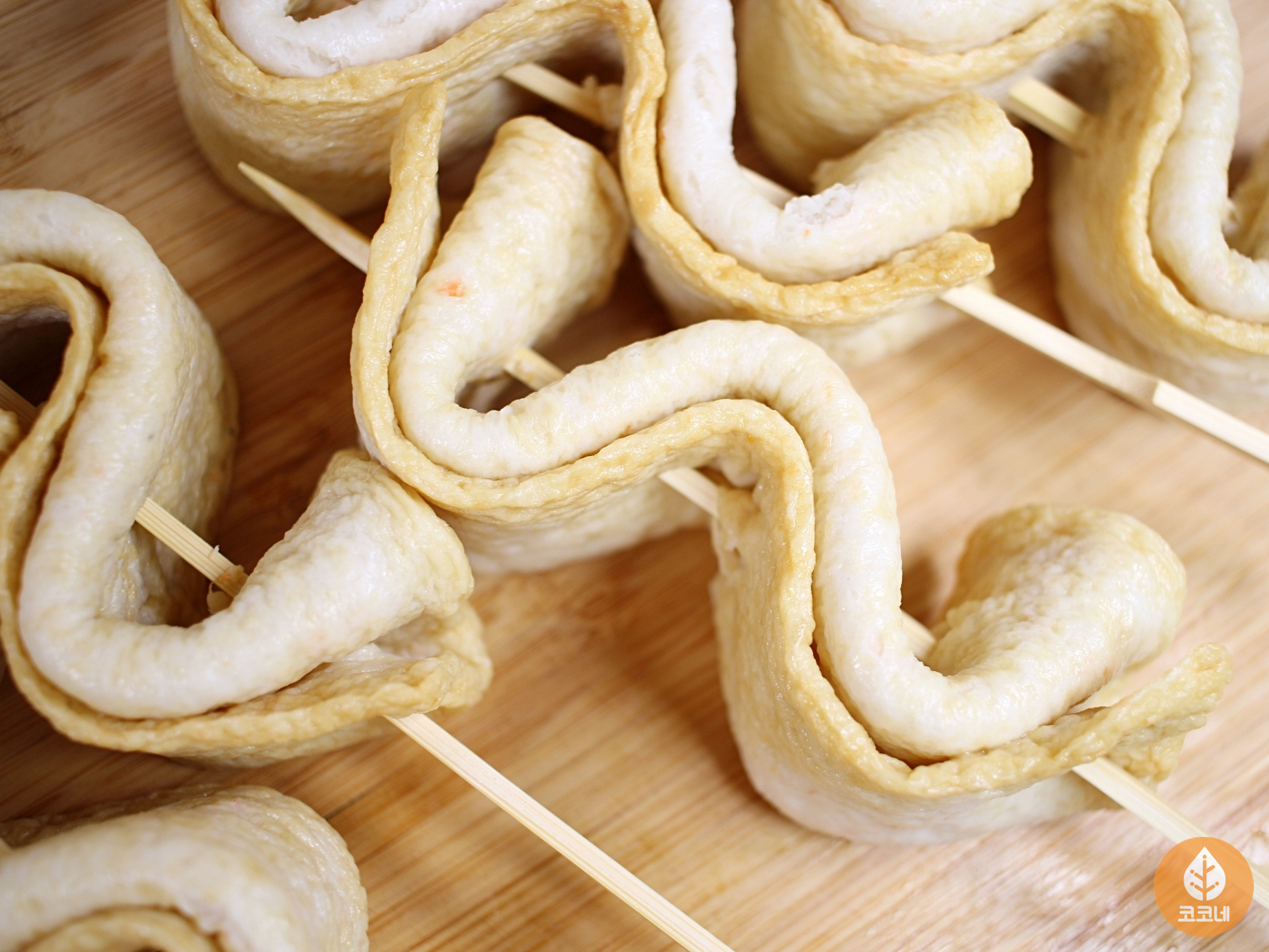 길쭉한 꼬치에 어묵을 끼워주세요.