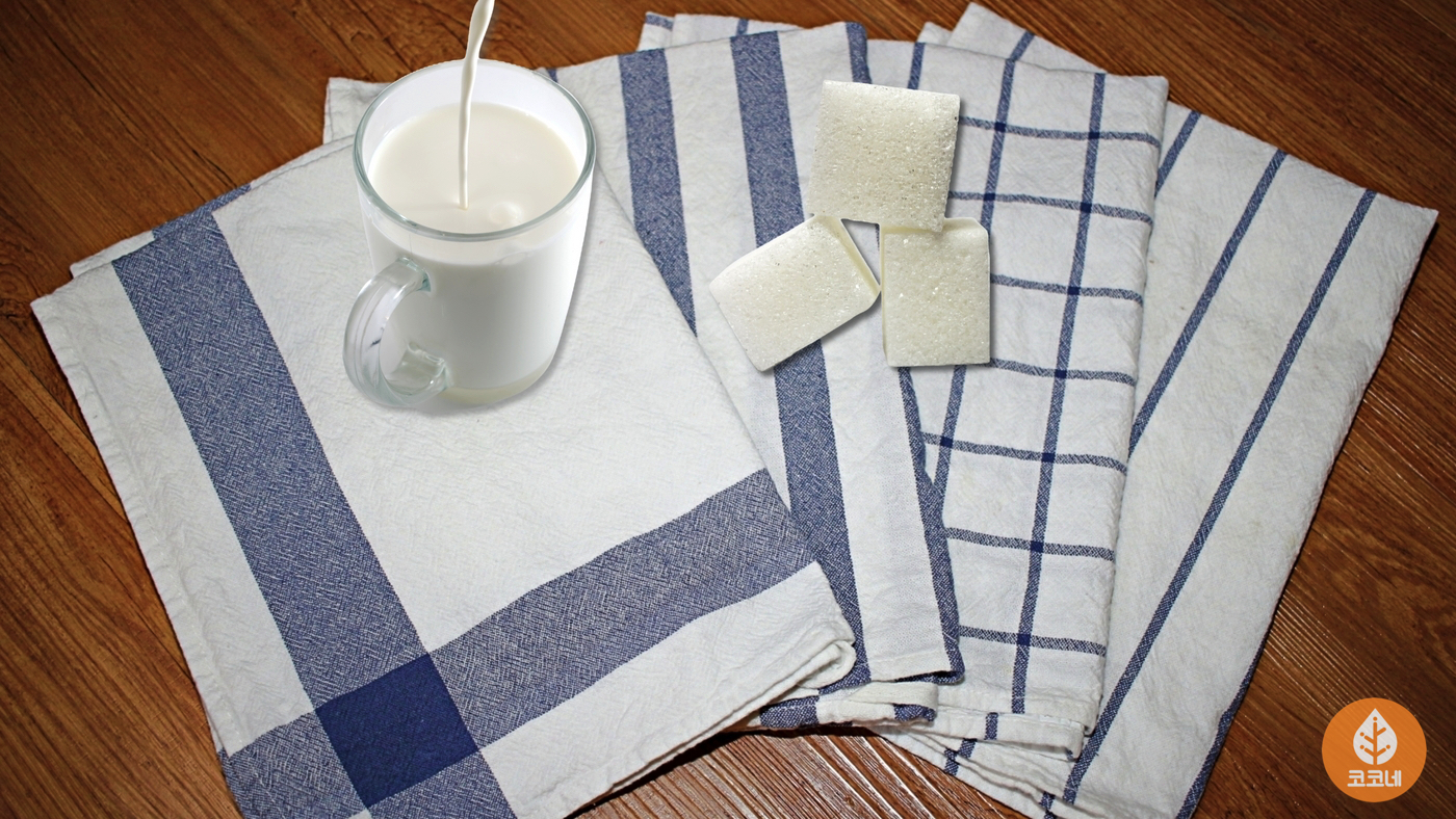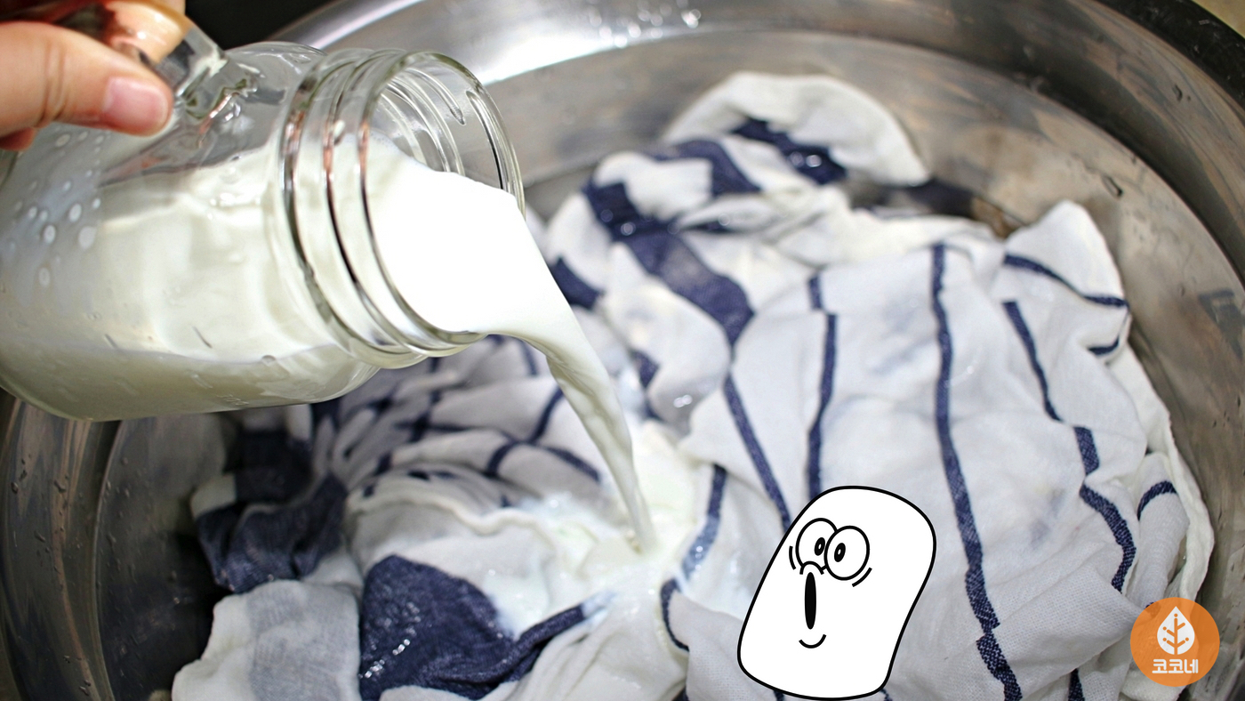 천연표백제 효과를 내는 우유를 넣으면