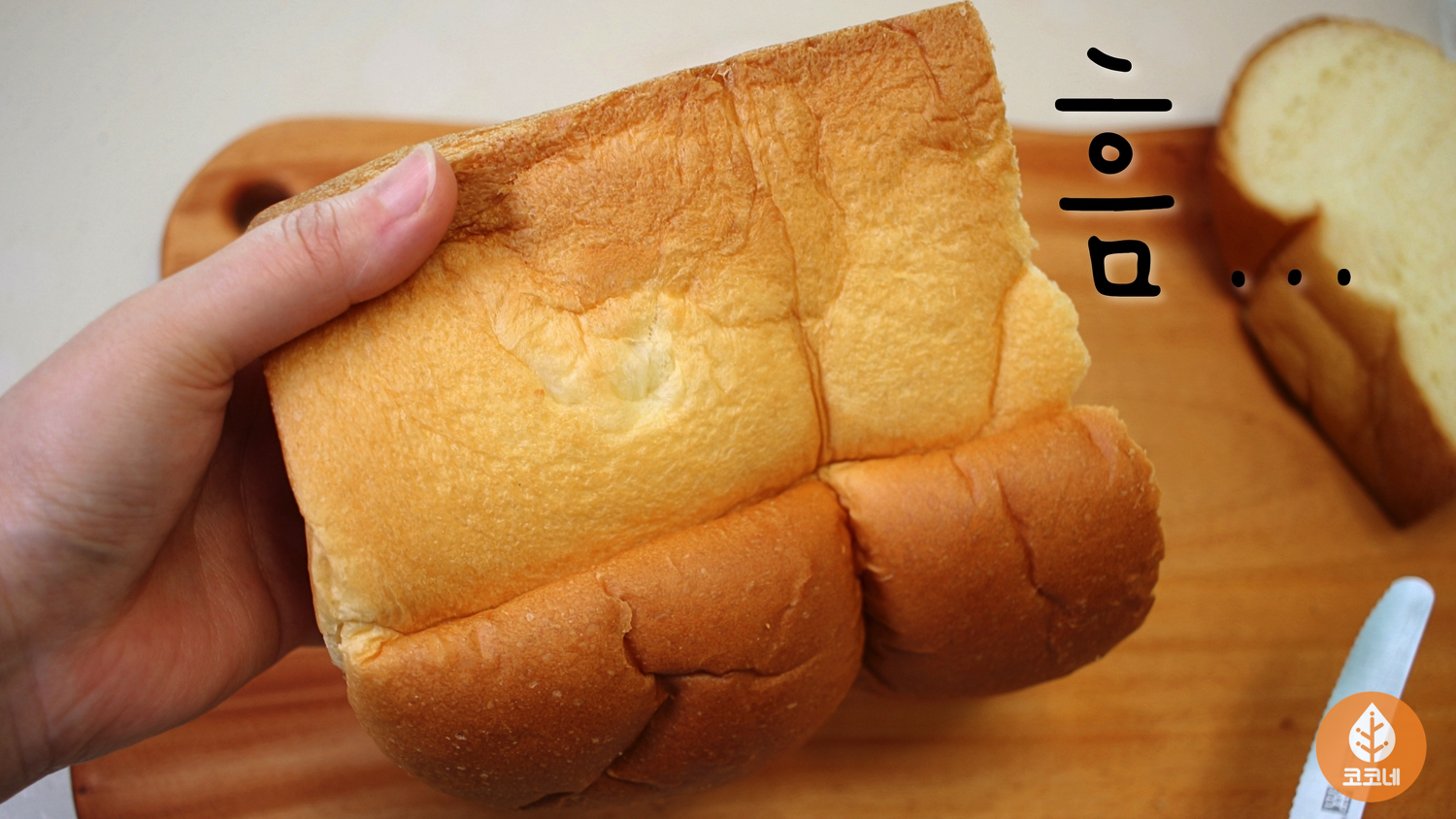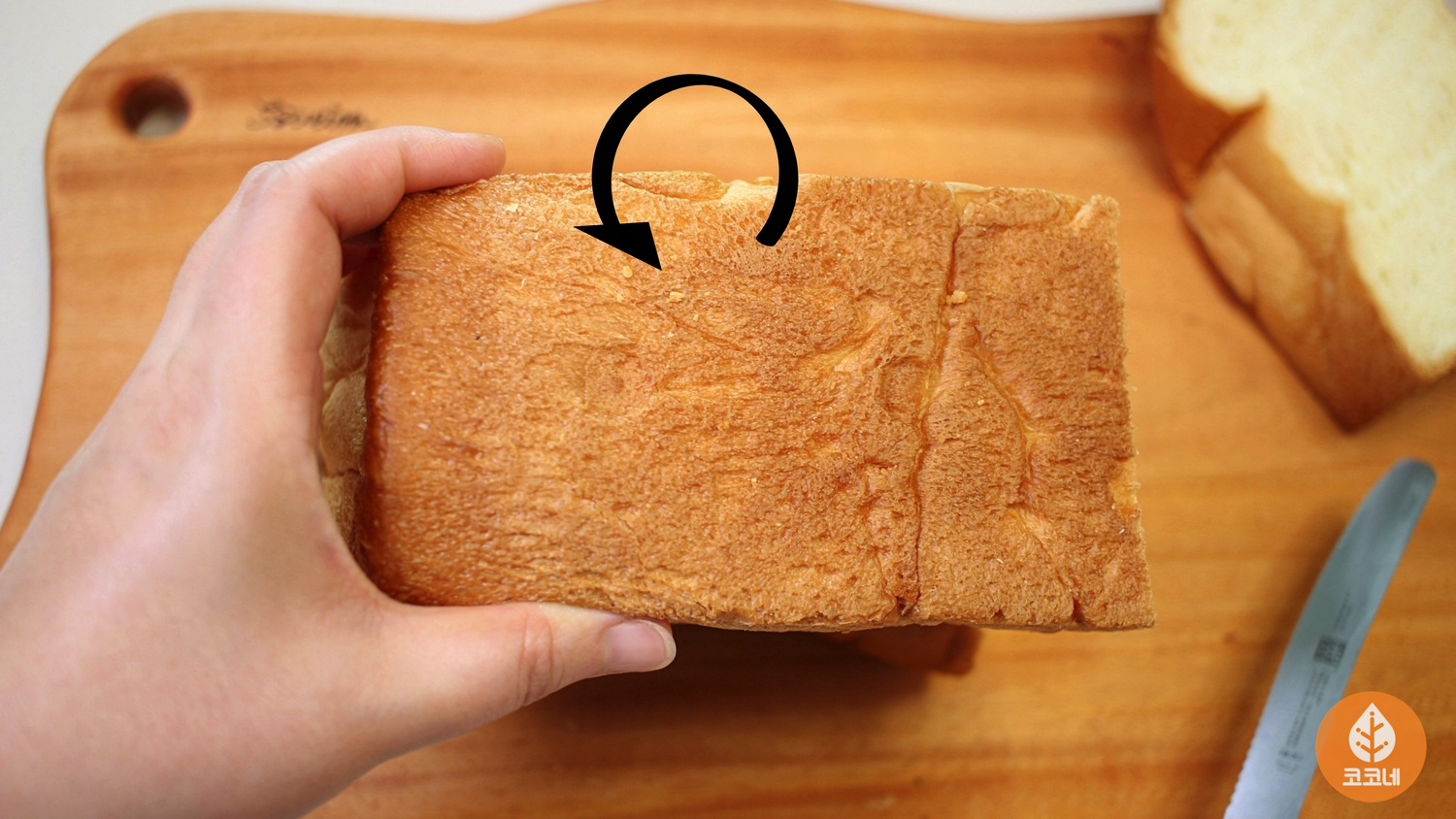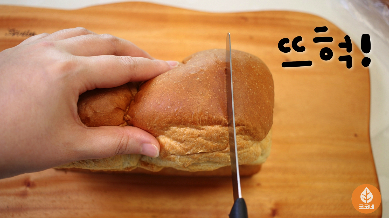 일반 식빵은 완전히 뒤집어서 잘라주시고요.