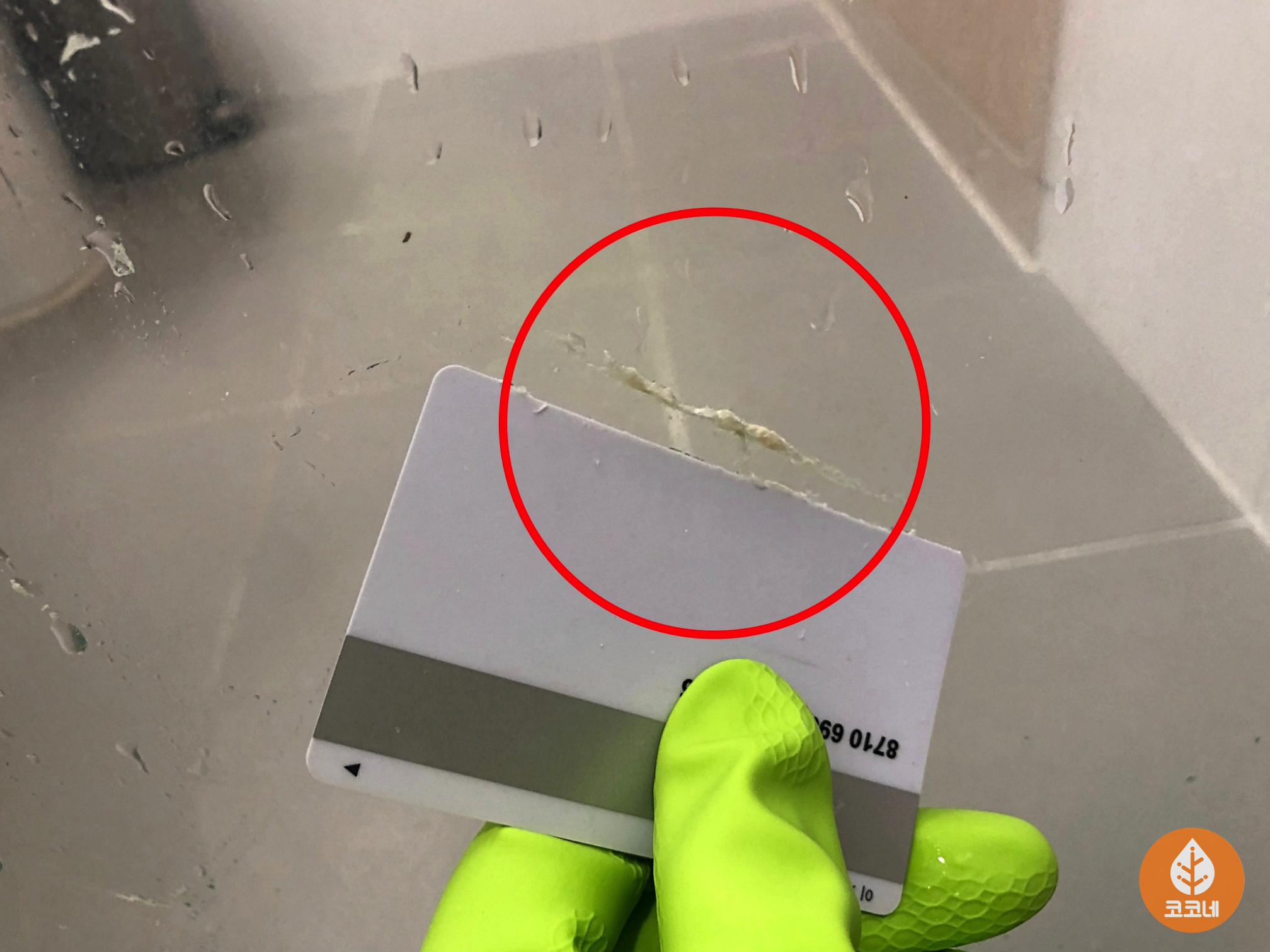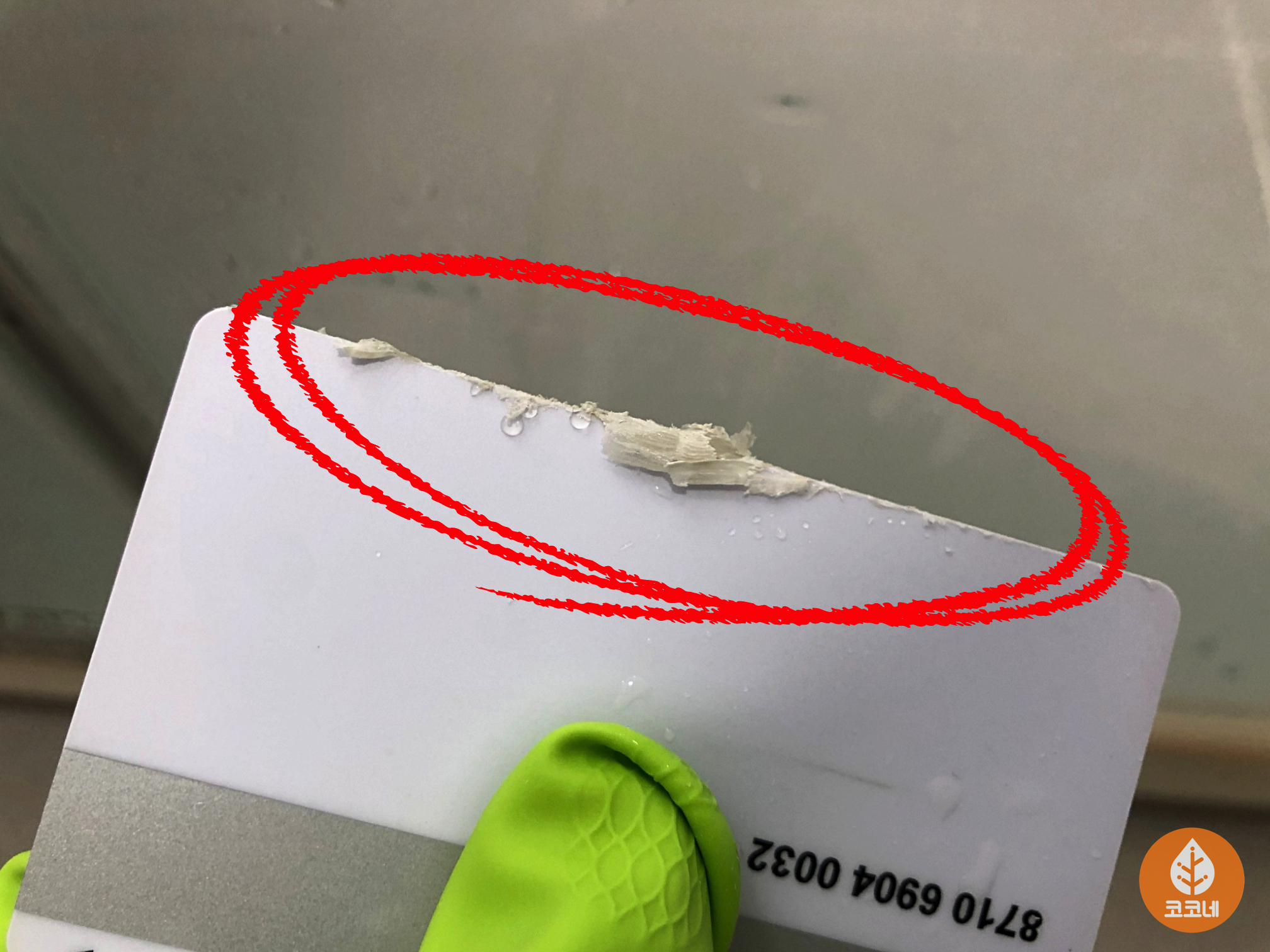 카드로 밀어서 벗겨질 정도의 물때니