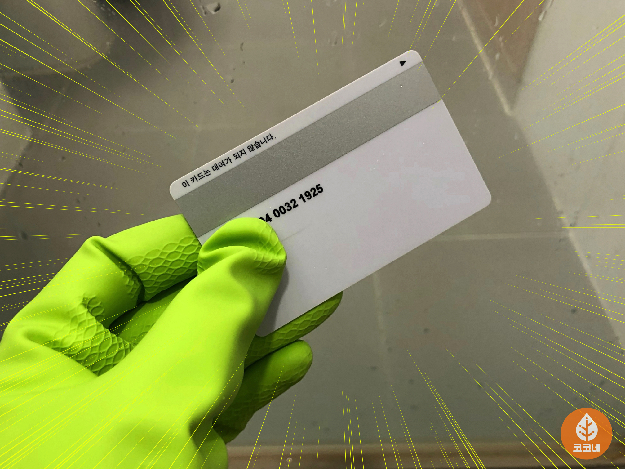 카드로 밀어서 닦아내 주시고요.