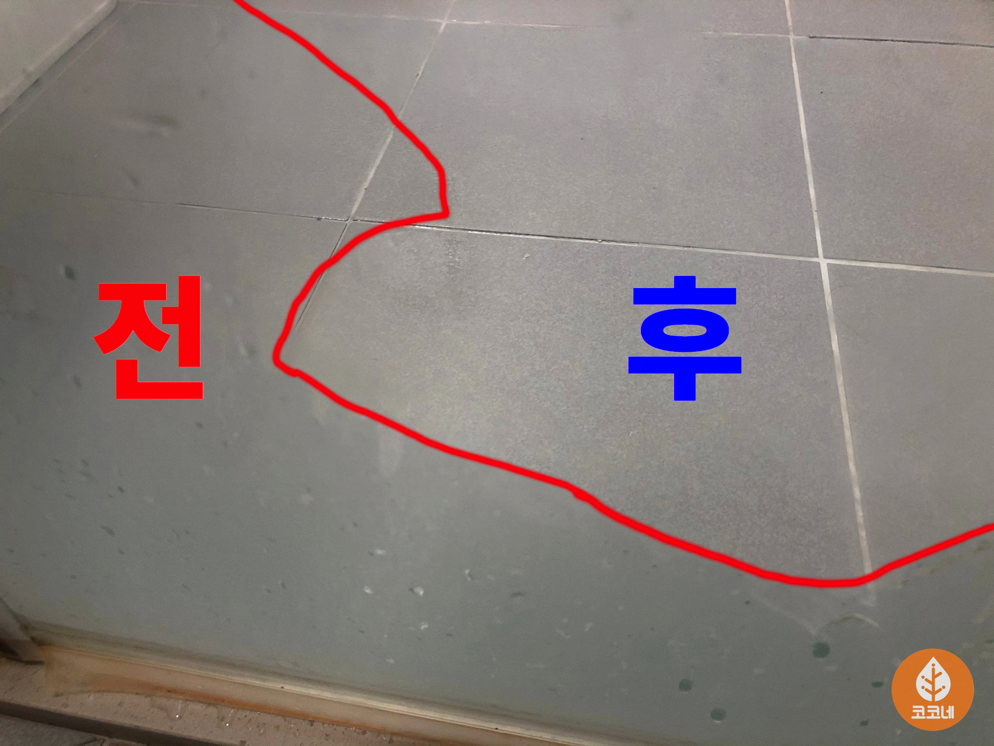 카드로 물때를 제거하기 전과 후,
