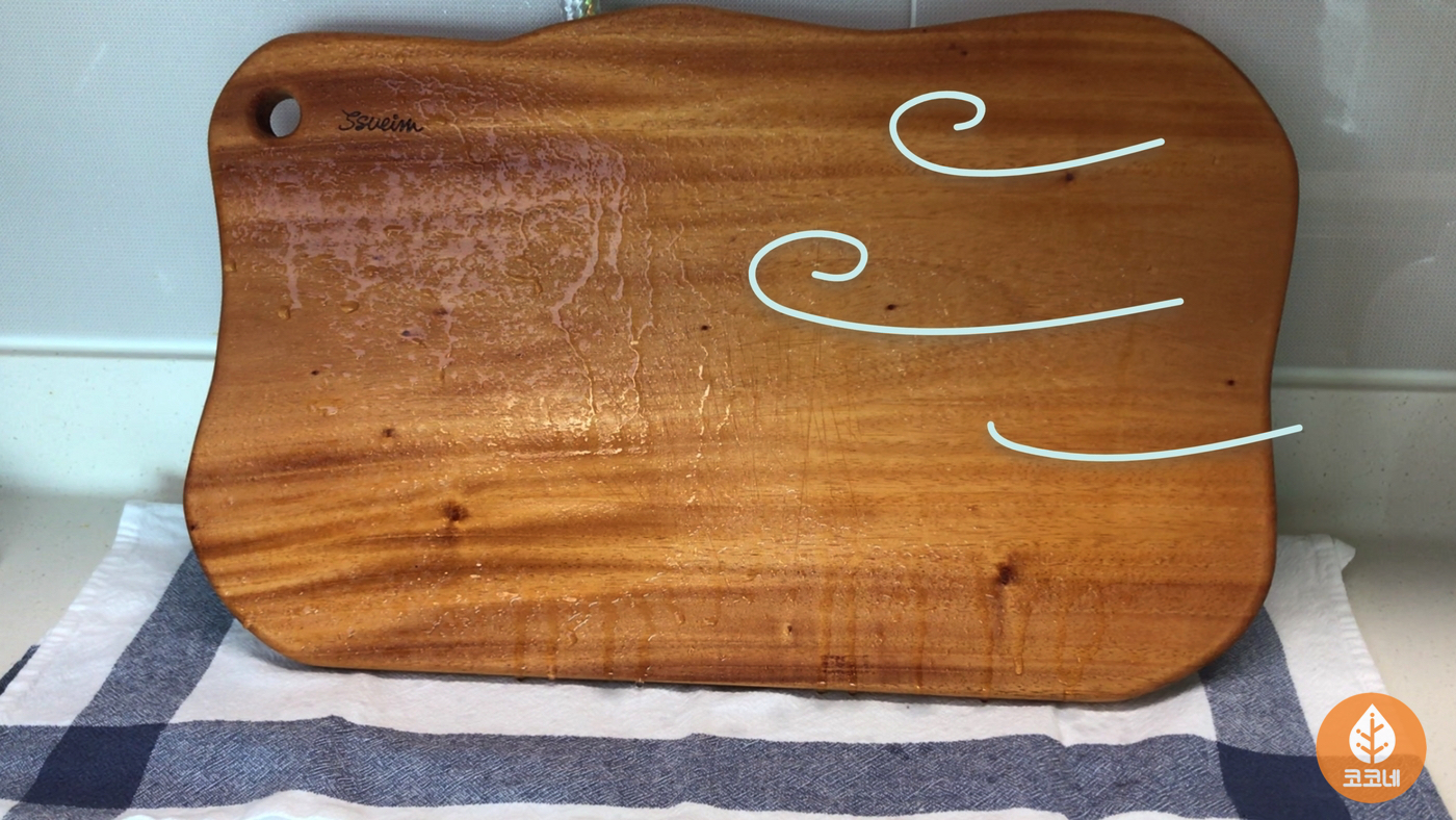 나무도마에 골고루 뿌려주세요.