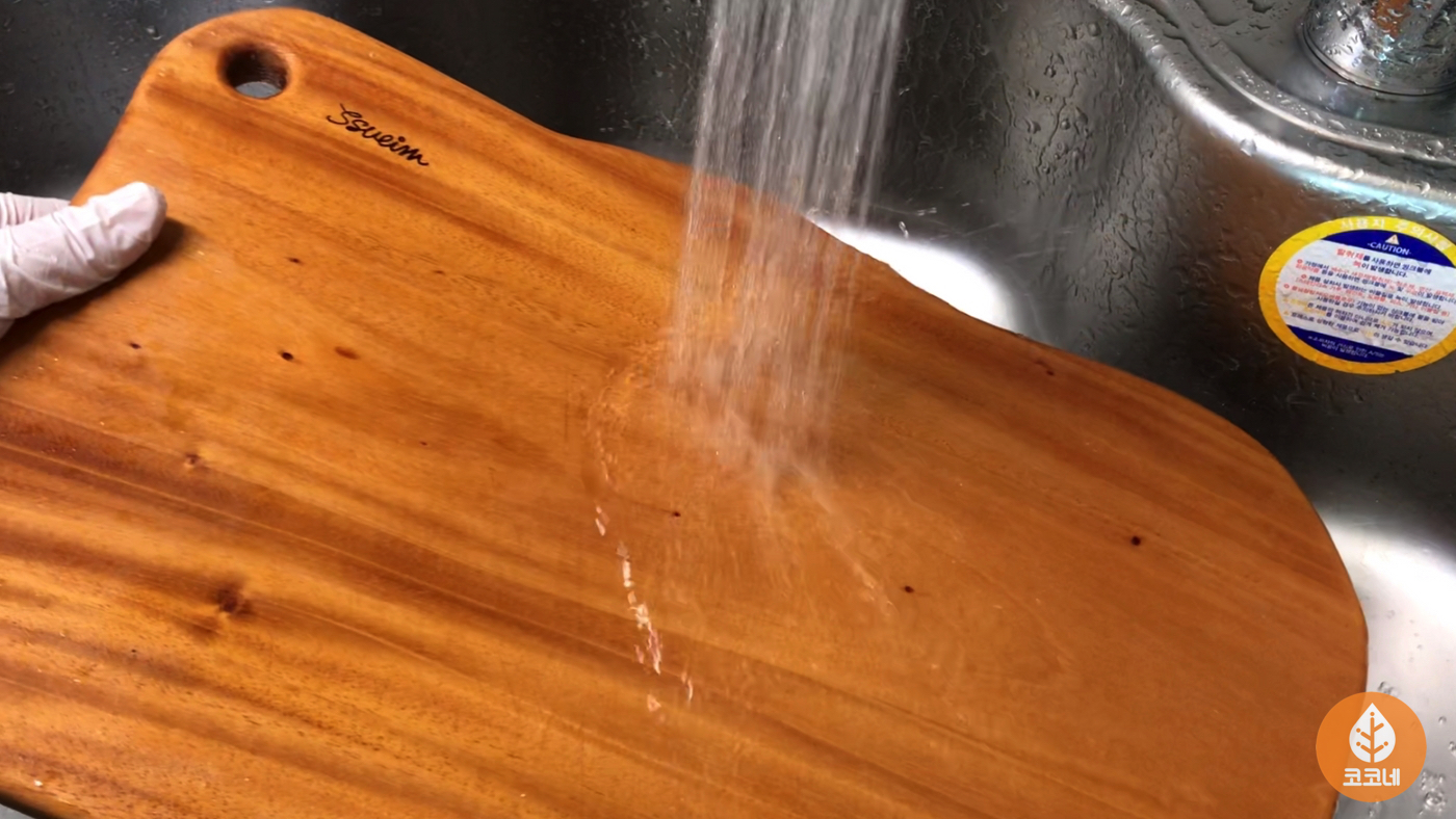 나무도마에 골고루 뿌려주세요.