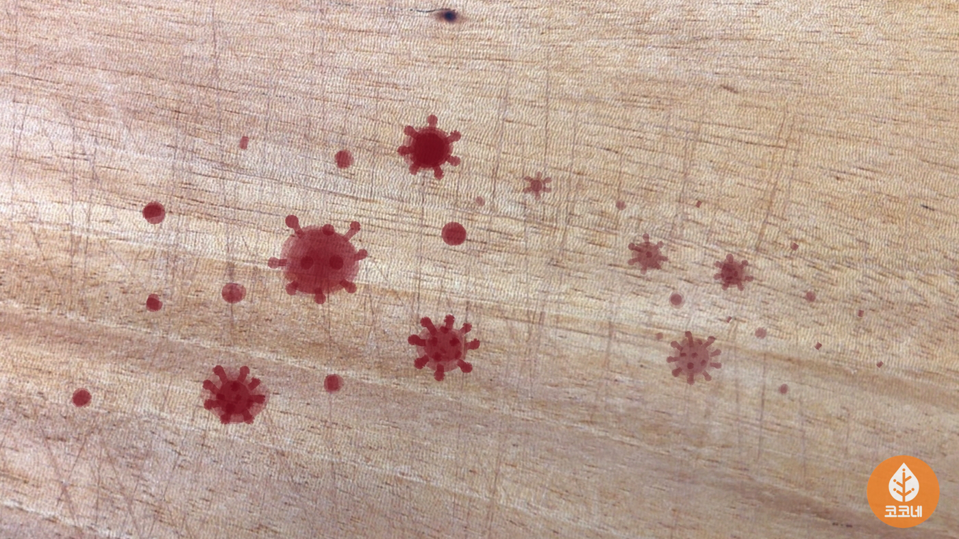 나무도마 표면이나 흠집 사이에 끼어있는