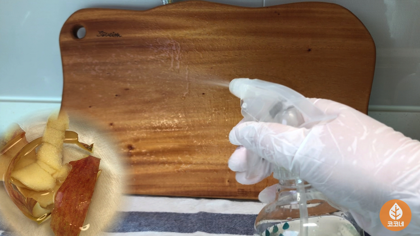 사과껍질을 우려낸 소주를 분무기에 담아서