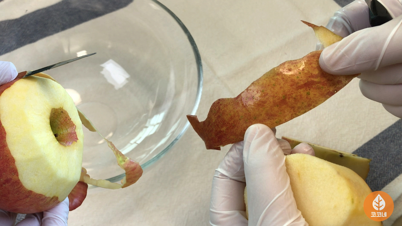사과 껍질만 따로 모아주시면 돼요.