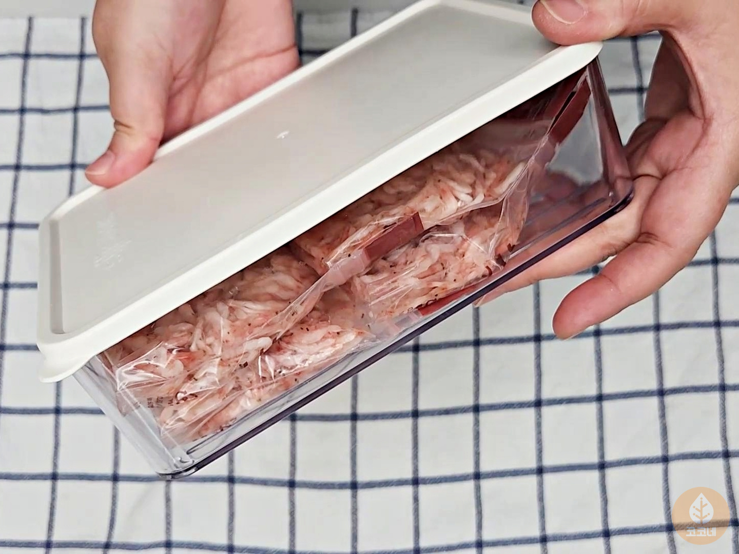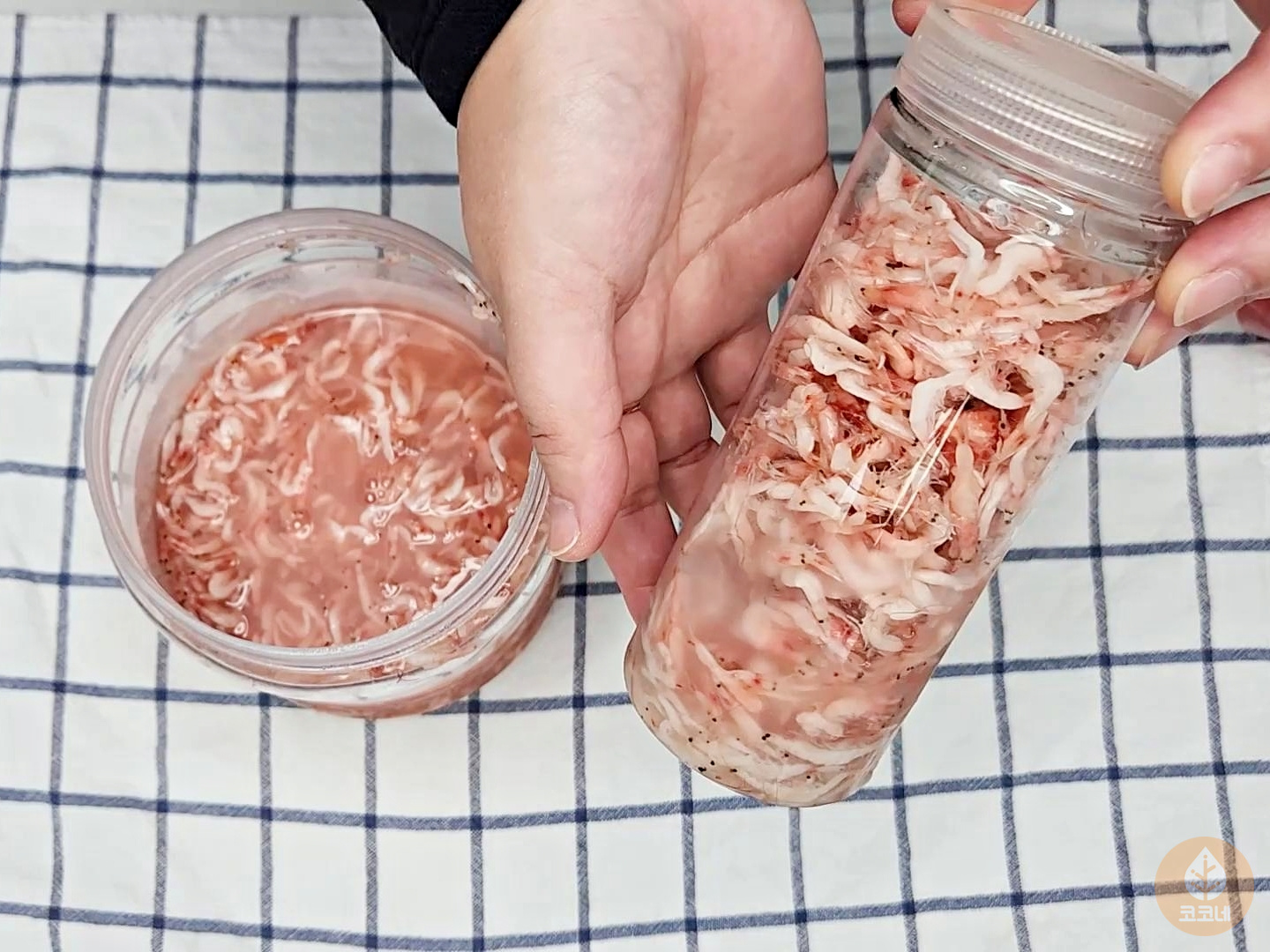 소분한 새우젓을 밀폐용기에 한번 더 담아주시고요.