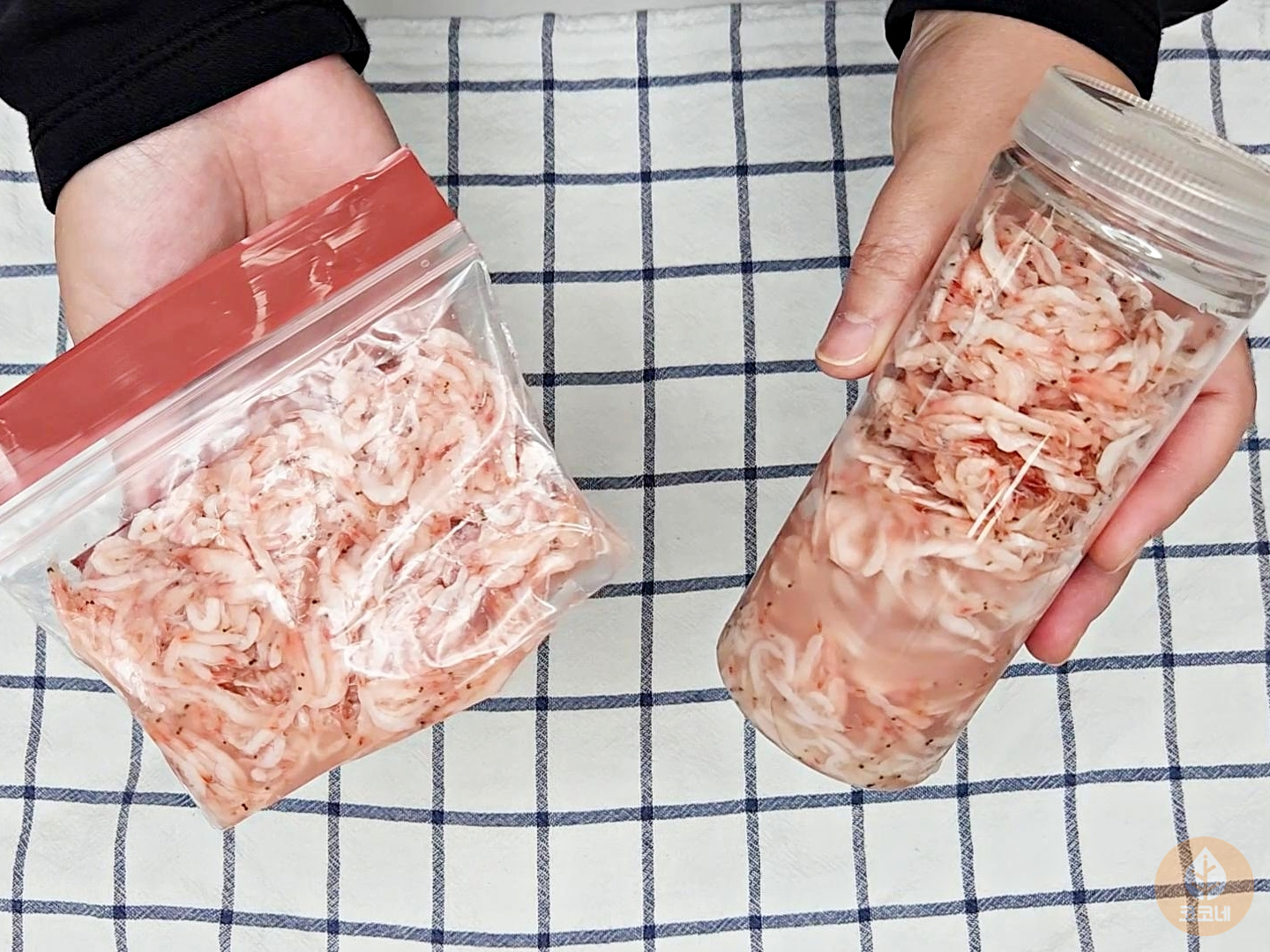 소분한 새우젓을 밀폐용기에 한번 더 담아주시고요.