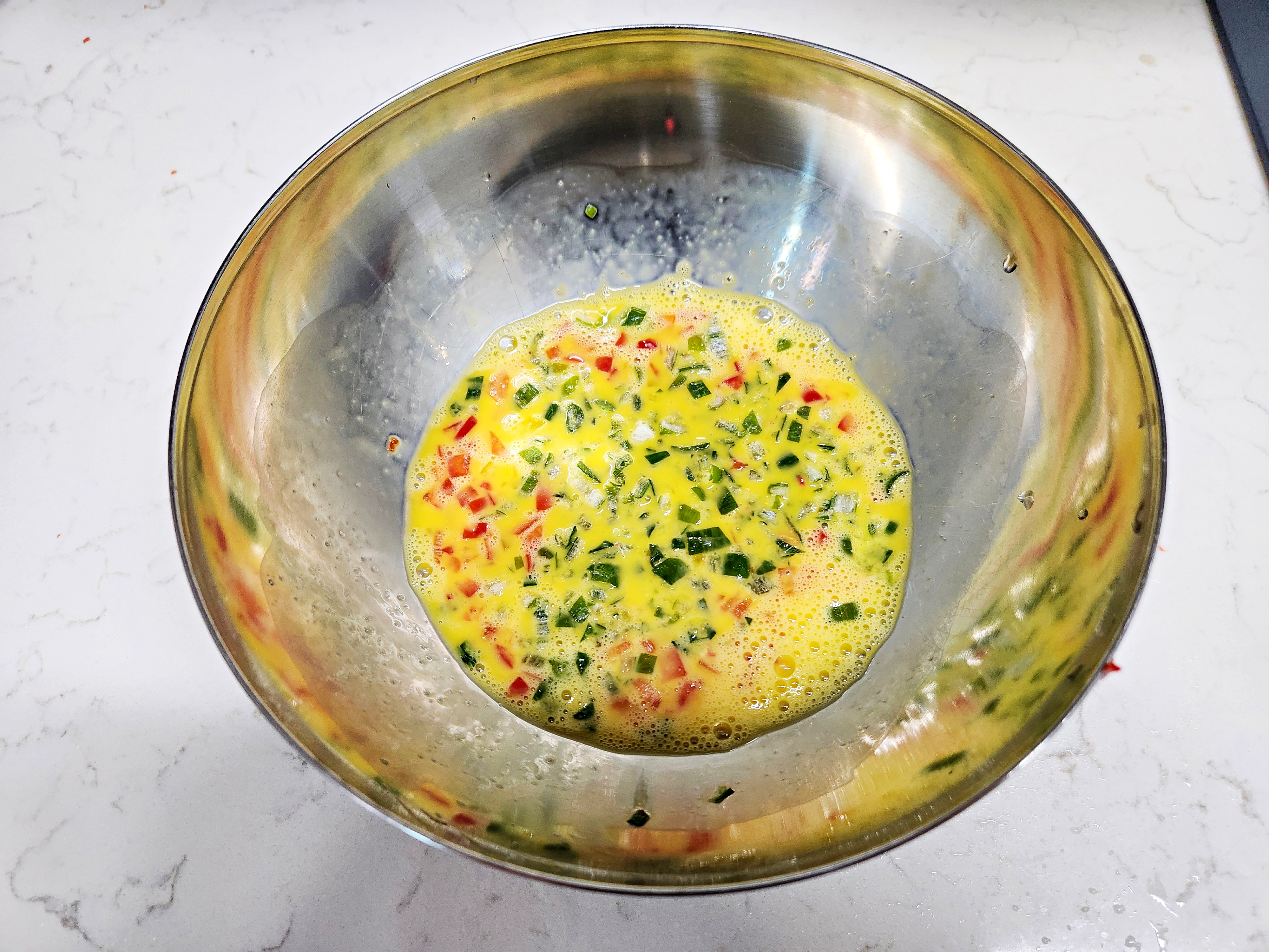잘게 잘라둔 파프리카와 대파를 넣거 섞어주세요.