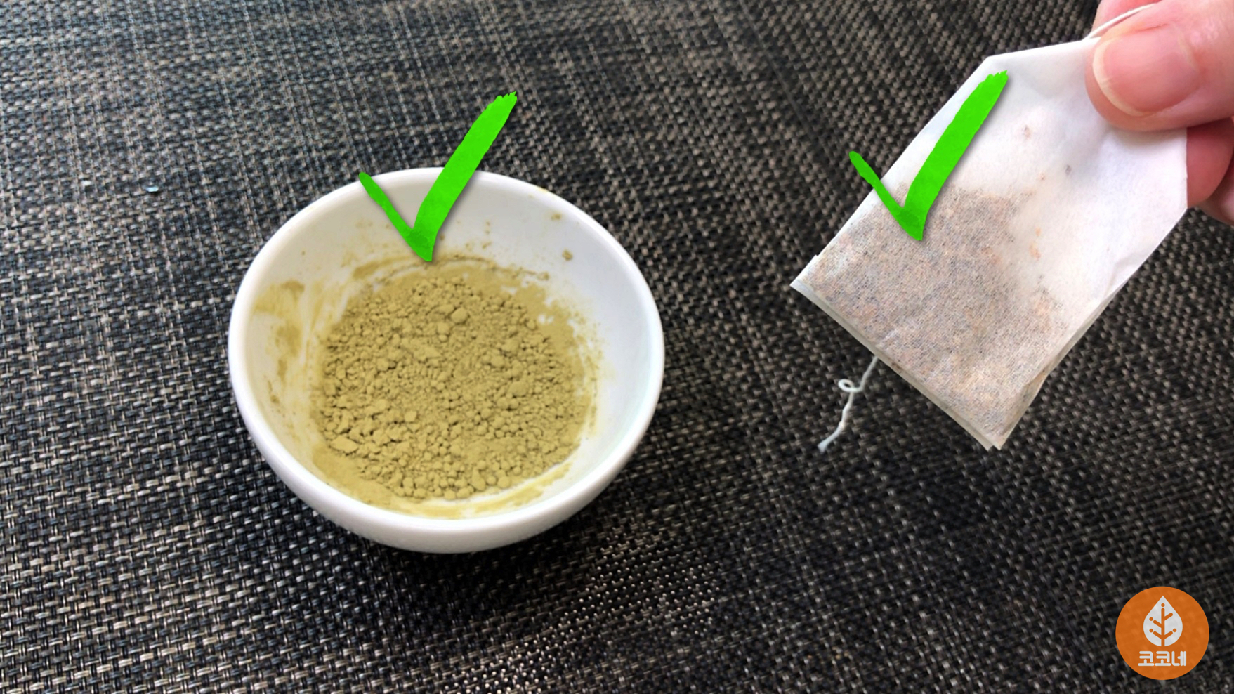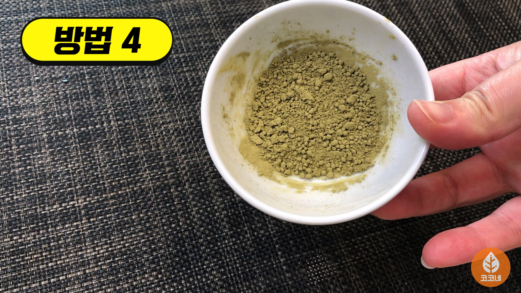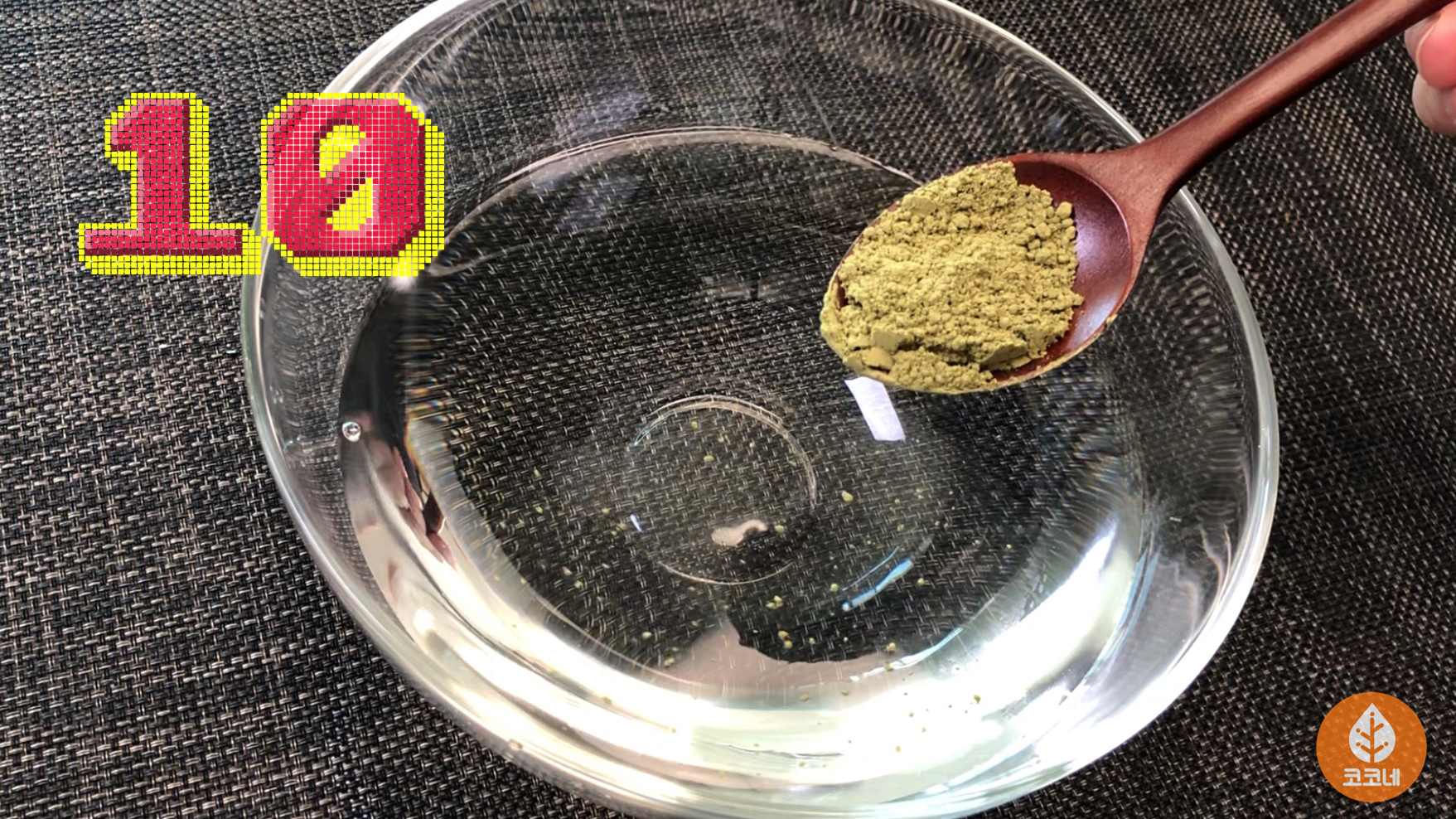 찬물에 녹차가루를 풀어서 녹차물을 만들고,